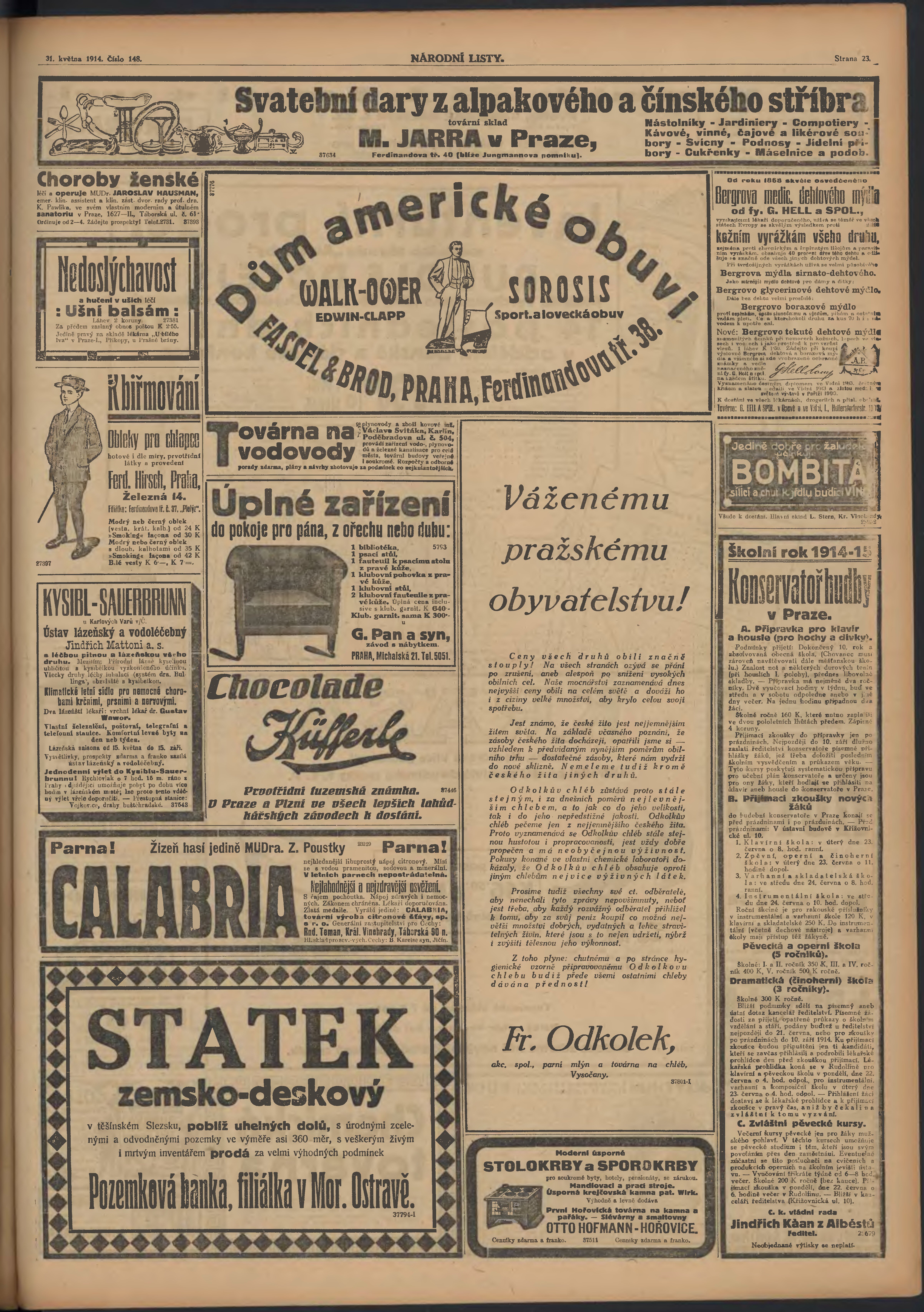 * Datum vydání výtisku: 31.5.1914 Číslo výtisku: 148 Poznámky k výtisku: ranní vydání;