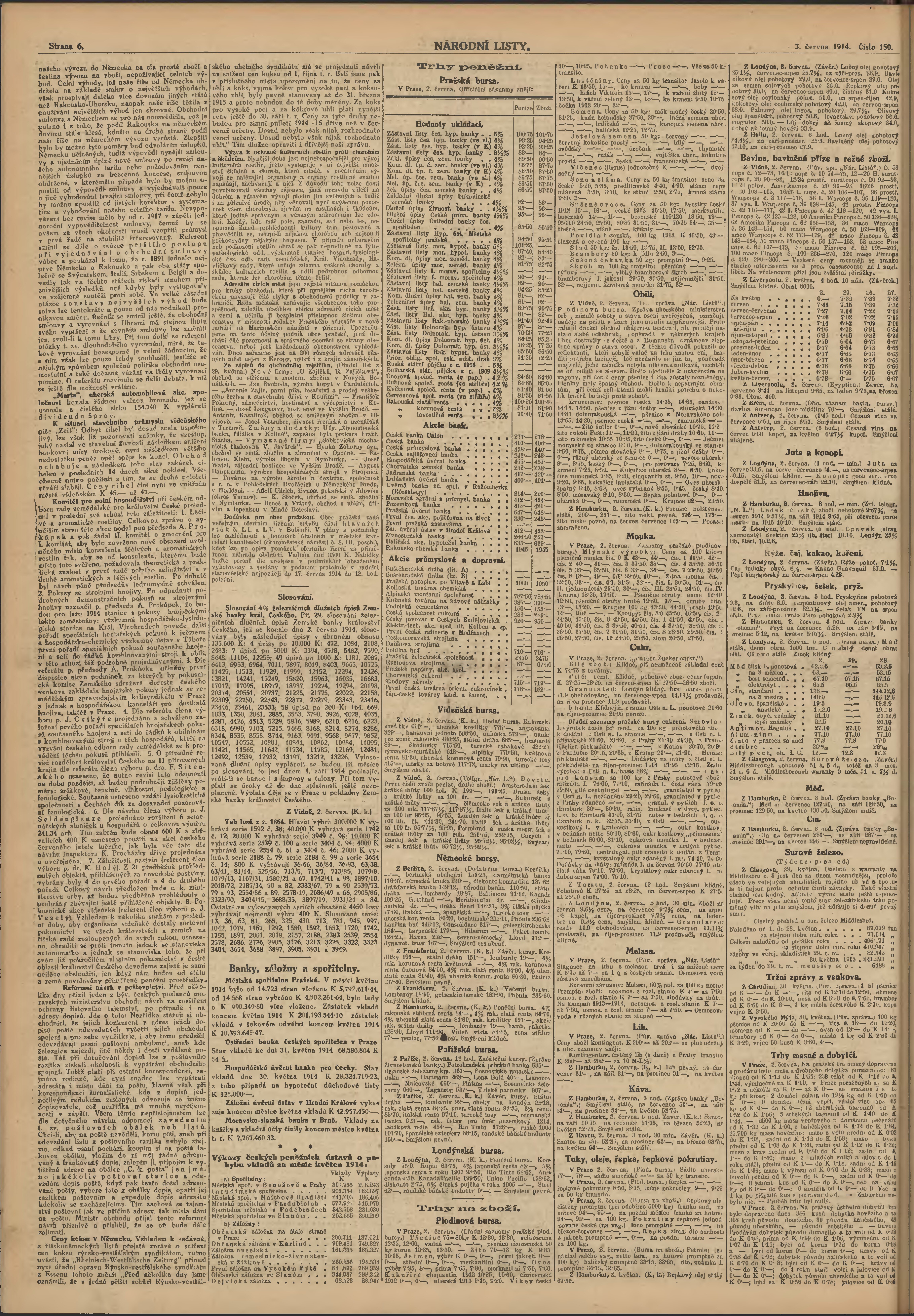 * Datum vydání výtisku: 3.6.1914 Číslo výtisku: 150 Poznámky k výtisku: ranní vydání;
