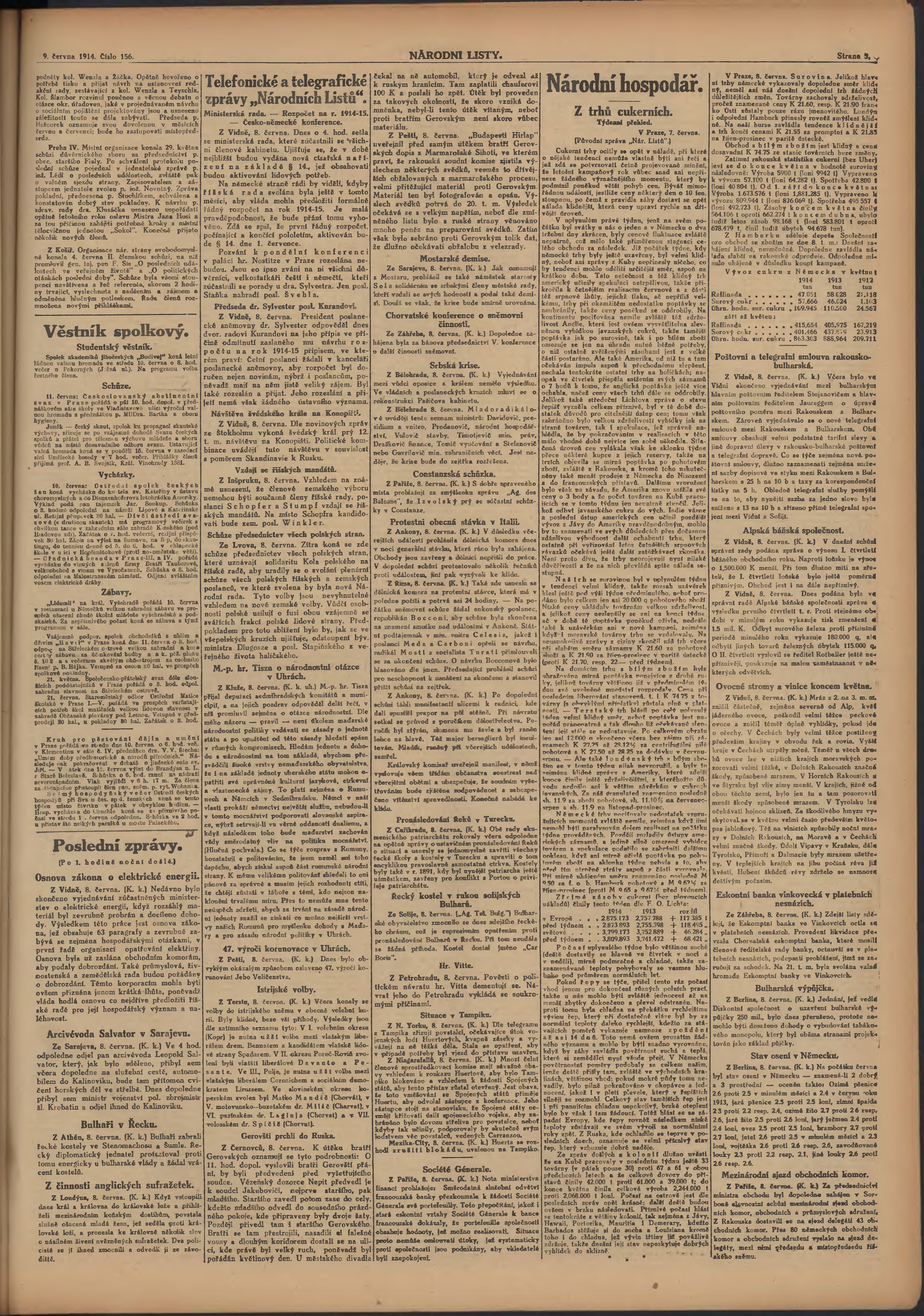 * Datum vydání výtisku: 9.6.1914 Číslo výtisku: 156 Poznámky k výtisku: ranní vydání;