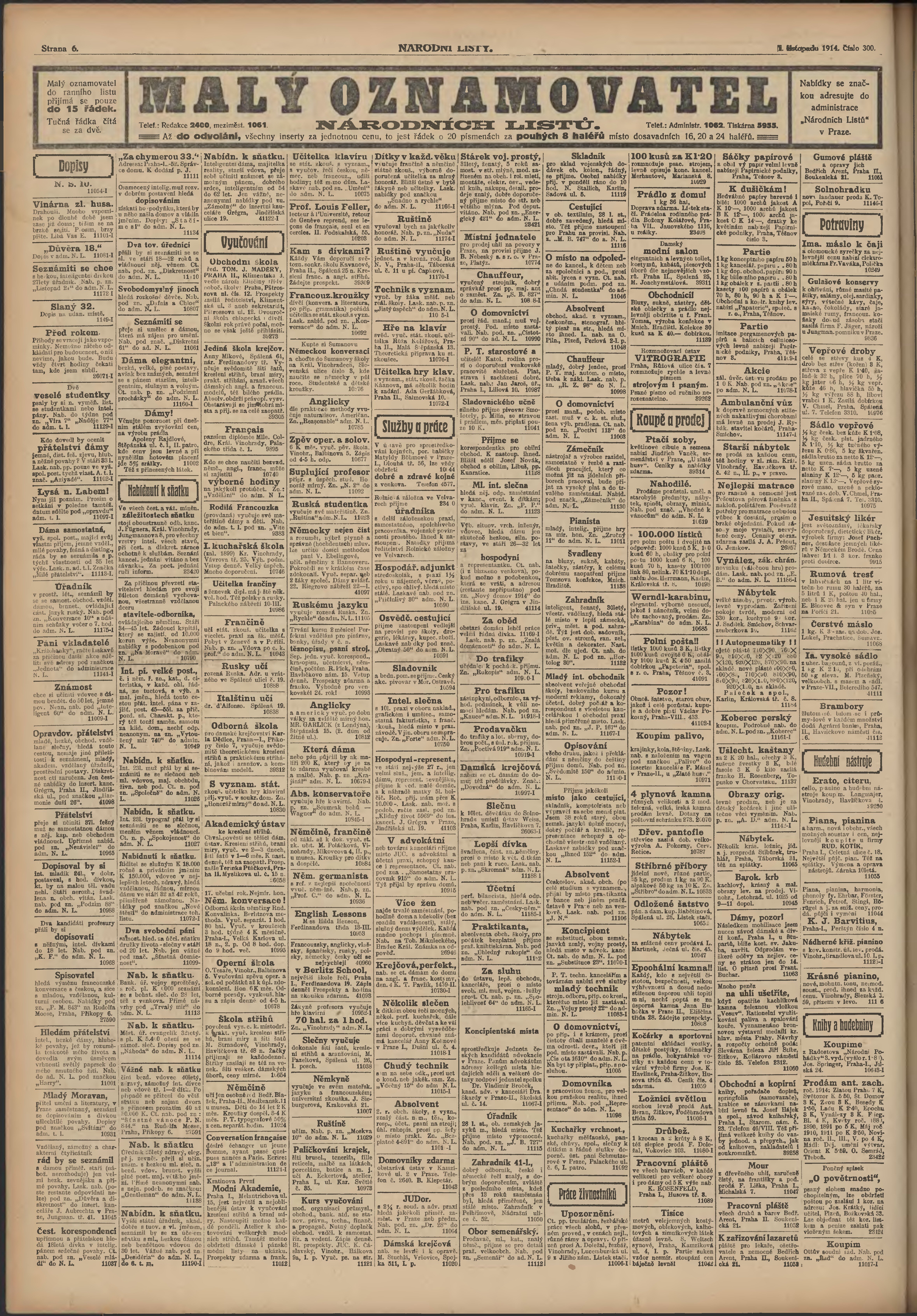 * Datum vydání výtisku: 1.11.1914 Číslo výtisku: 300 Poznámky k výtisku: ranní vydání; 2. vydání pro Prahu;