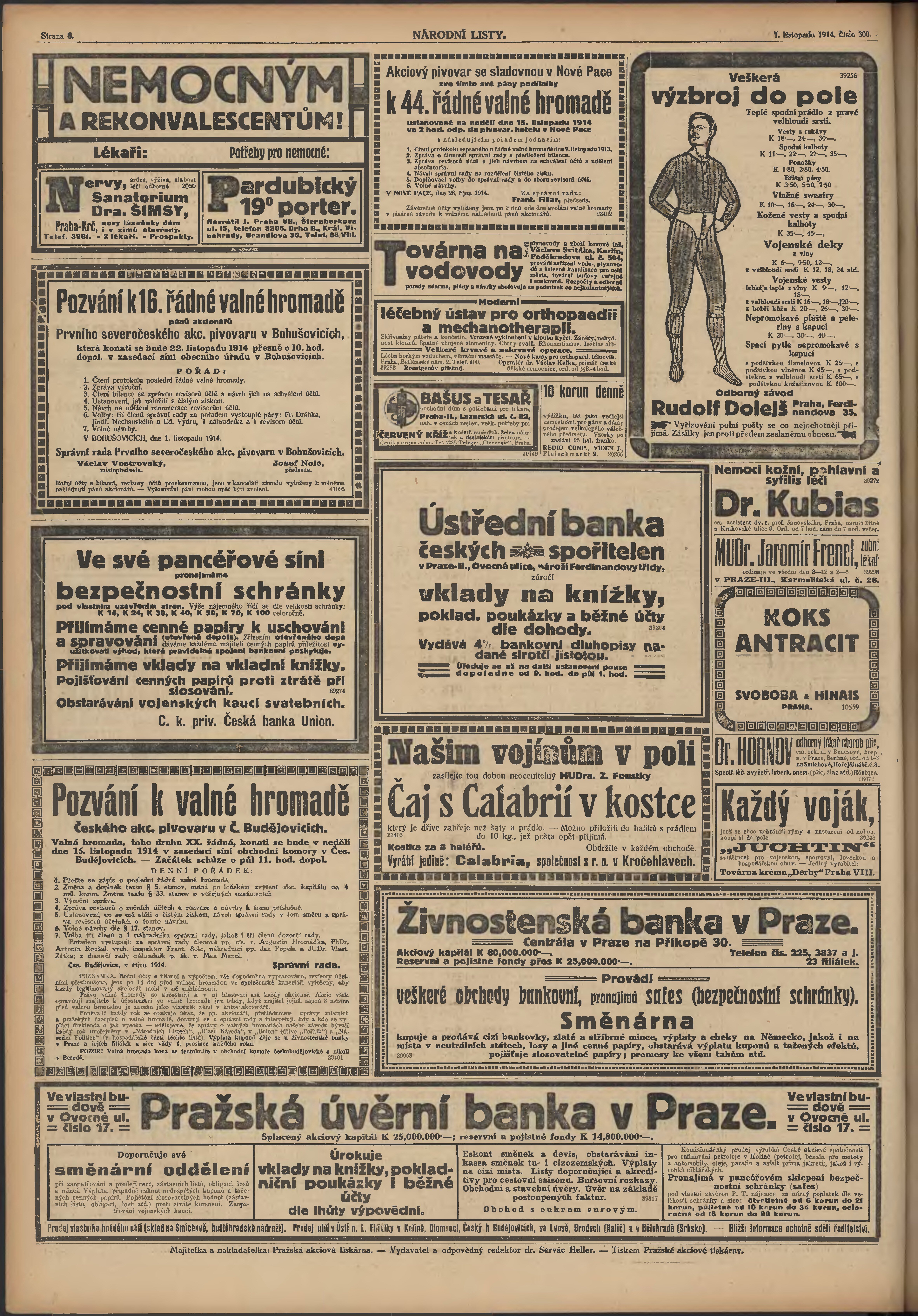 * Datum vydání výtisku: 1.11.1914 Číslo výtisku: 300 Poznámky k výtisku: ranní vydání; 2. vydání pro Prahu;