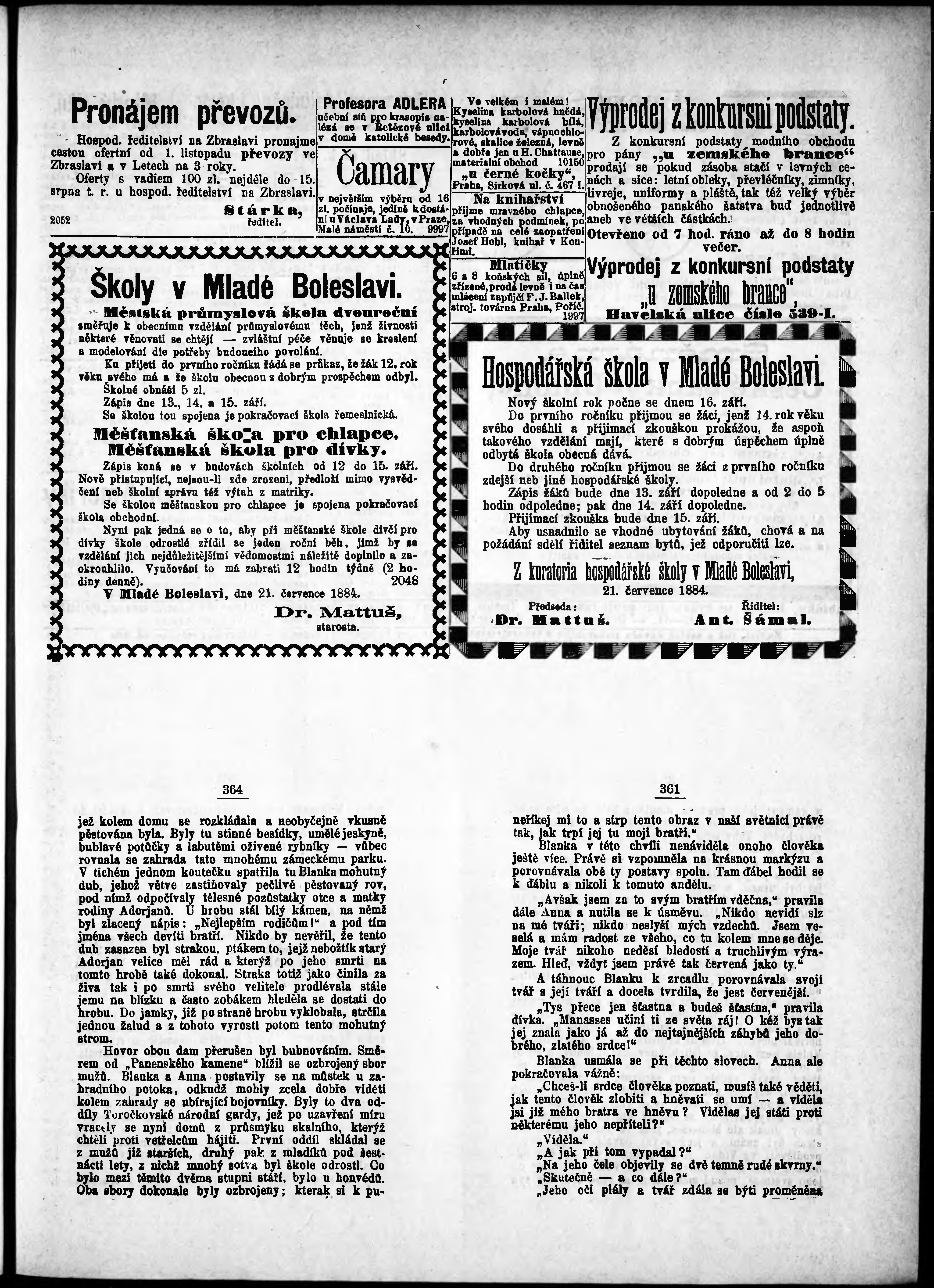 * Datum vydání výtisku: 26.7.1884 Číslo výtisku: 200 Poznámky k výtisku: odpolední vydání;