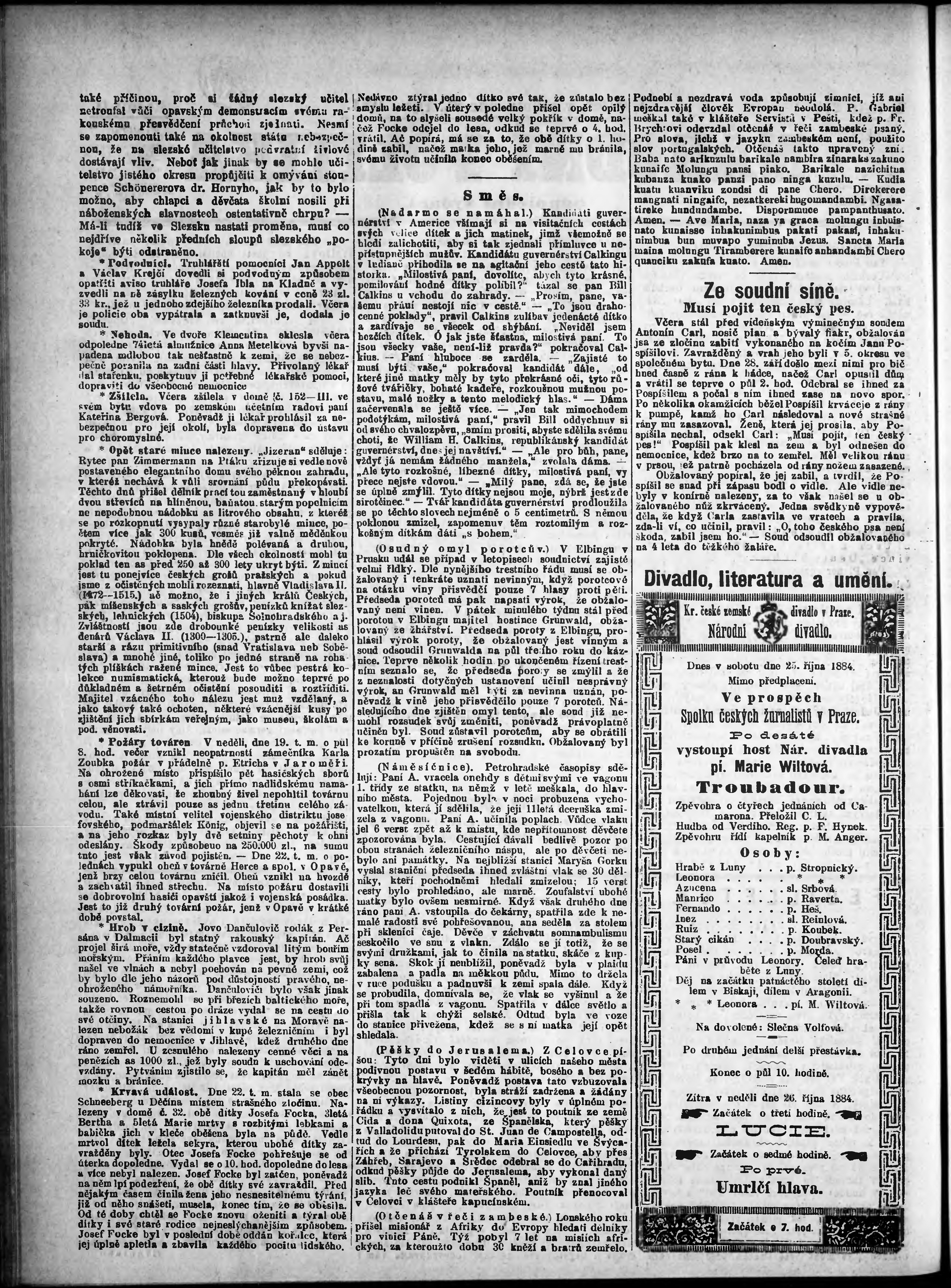 * Datum vydání výtisku: 25.10.1884 Číslo výtisku: 290 Poznámky k výtisku: odpolední vydání; nekonzistence číslování stran;