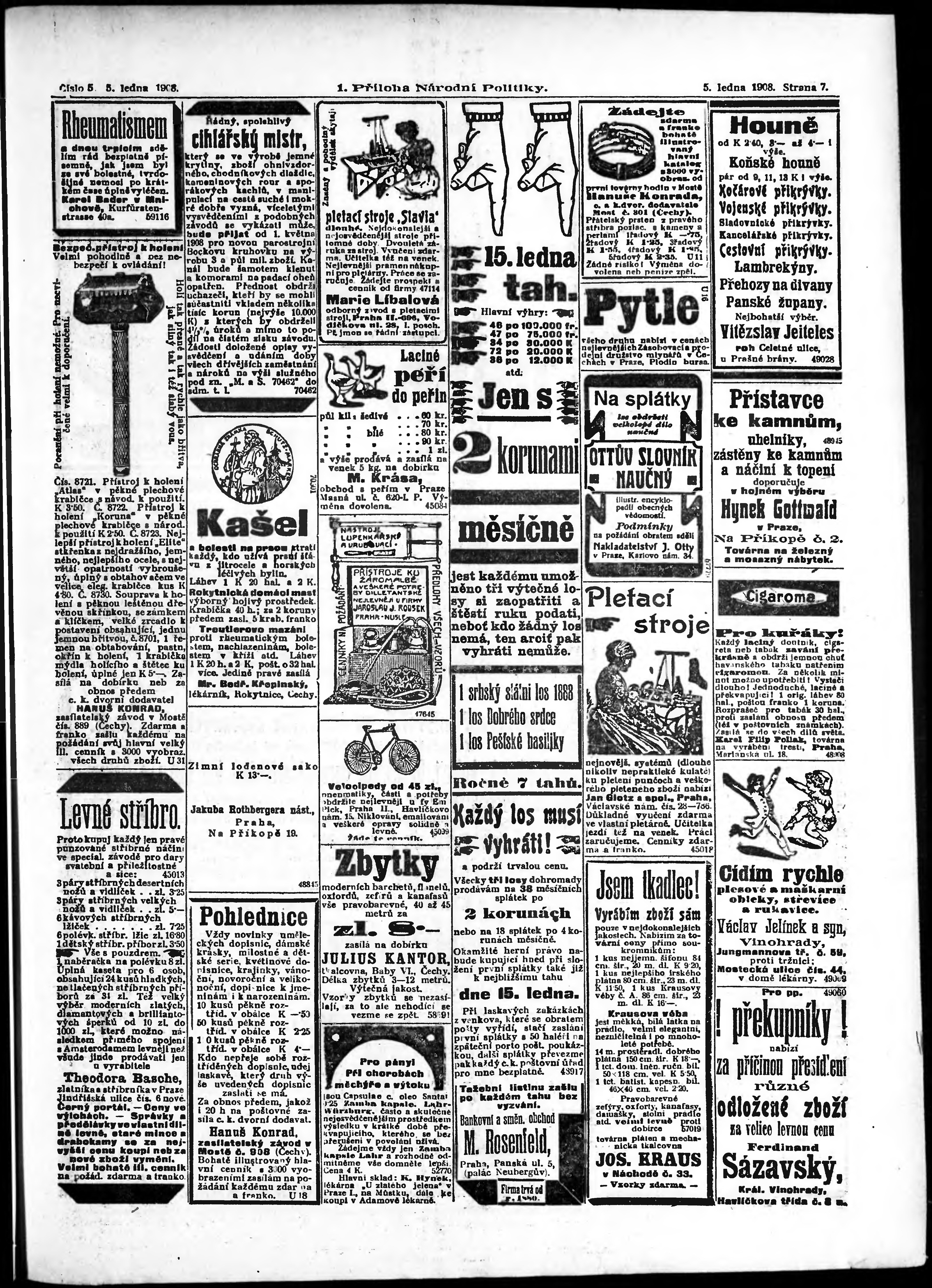 * Datum vydání výtisku: 5.1.1908 Číslo výtisku: 5 Typ výtisku: příloha Poznámky k výtisku: 1. příloha;