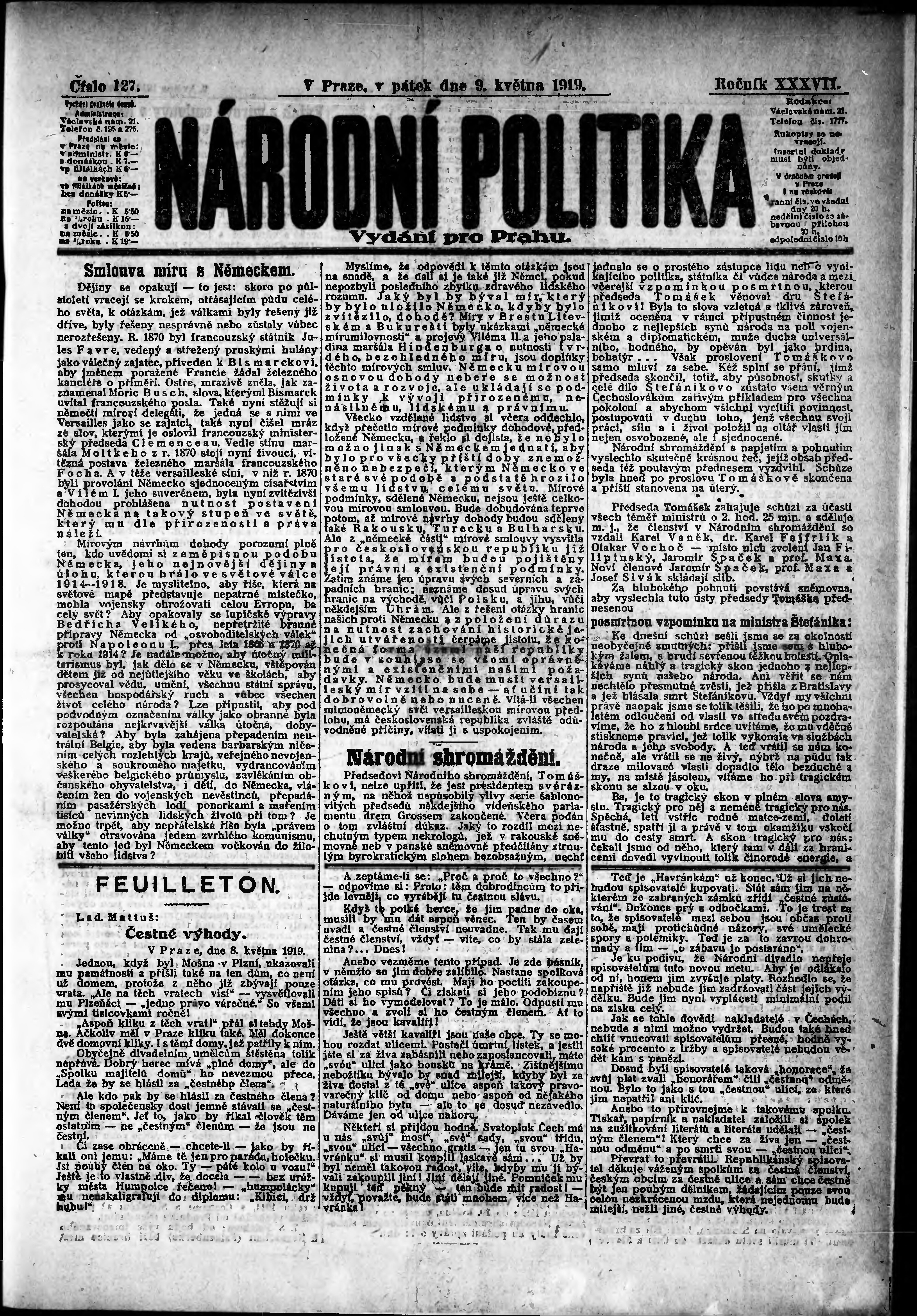 ranní vydání; vydání pro Prahu;