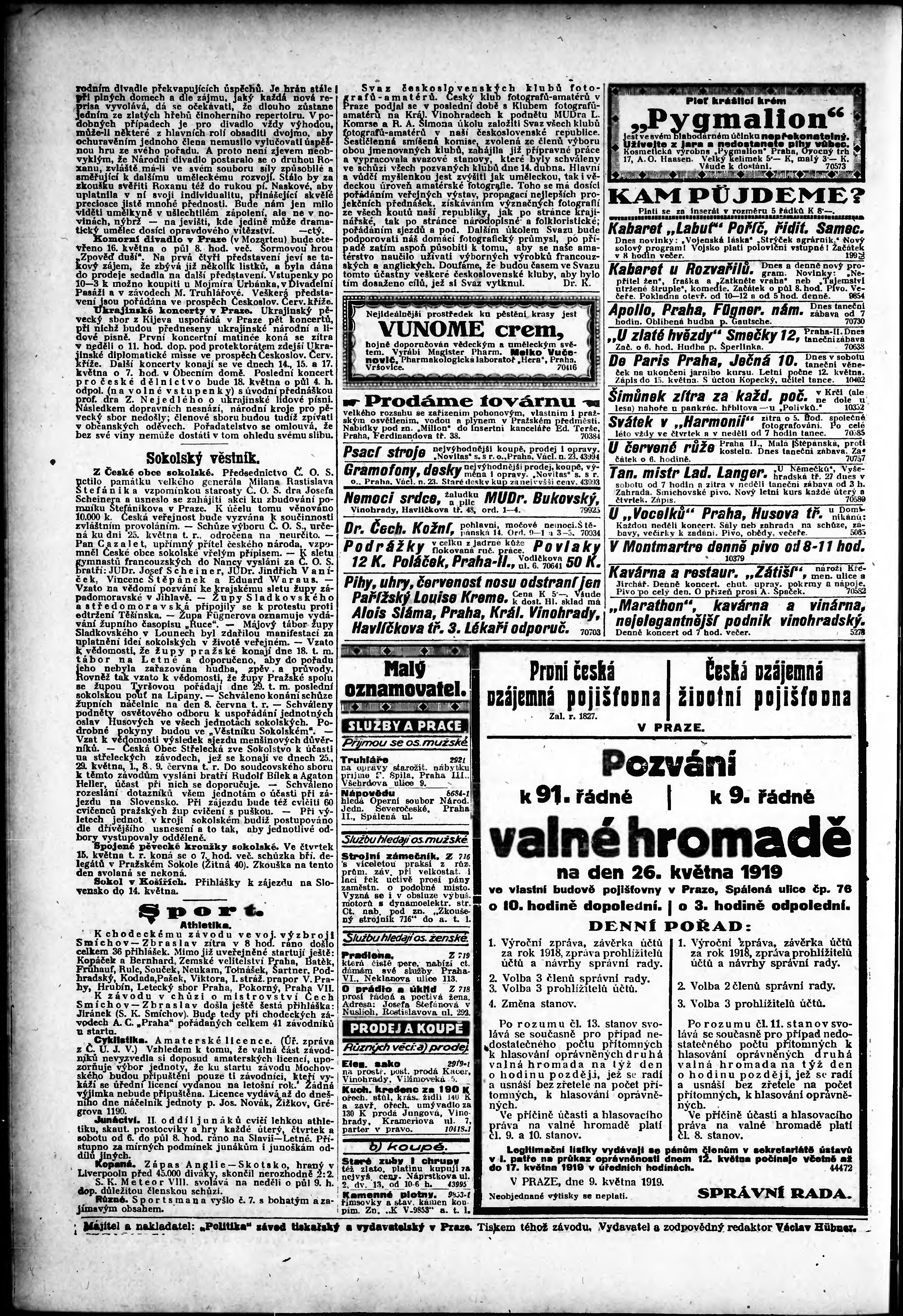* Datum vydání výtisku: 10.5.1919 Číslo výtisku: 128 Poznámky k výtisku: odpolední vydání;