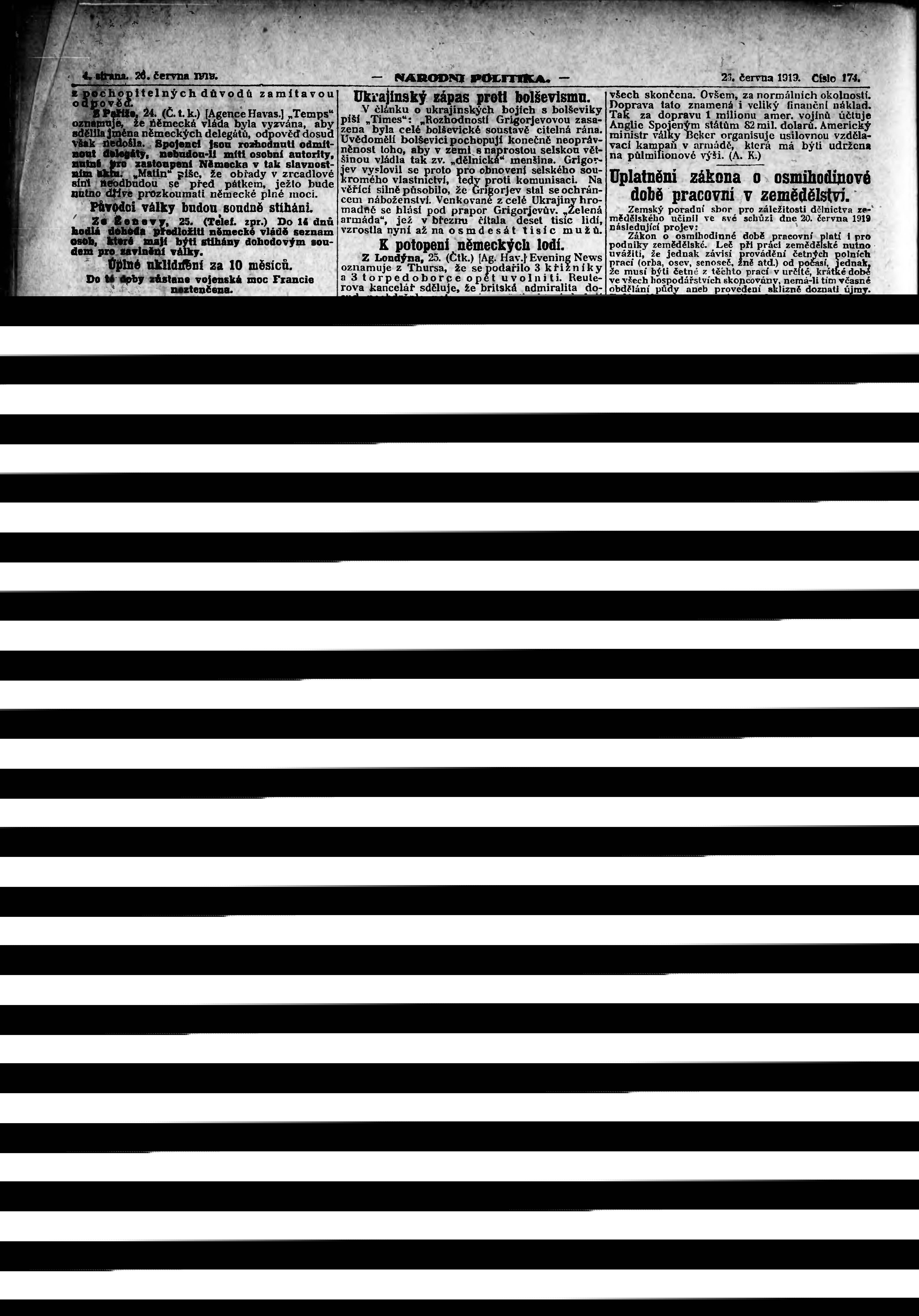 * Datum vydání výtisku: 26.6.1919 Číslo výtisku: 174 Poznámky k výtisku: ranní vydání; vydání pro Prahu;