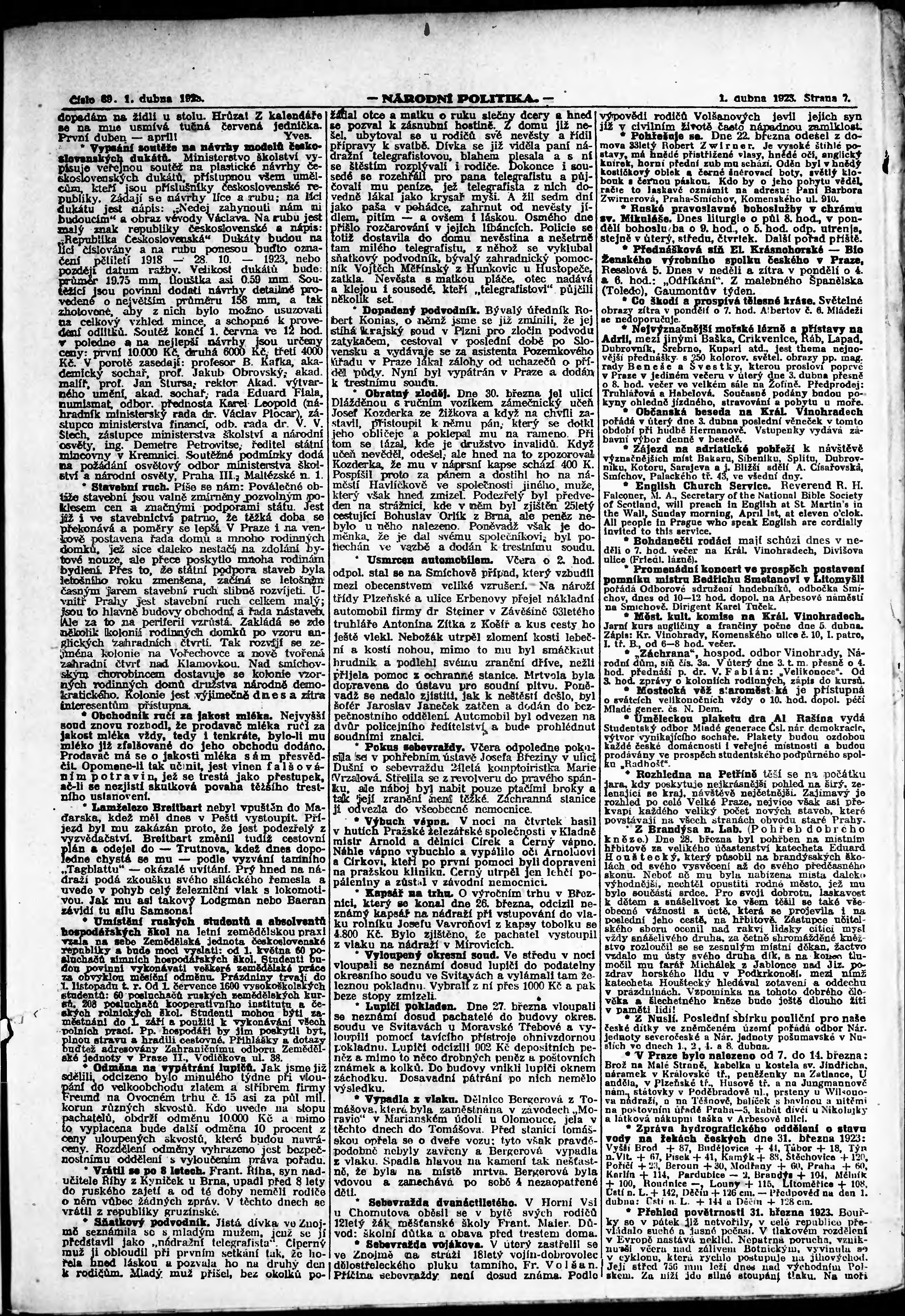 * Datum vydání výtisku: 1.4.1923 Číslo výtisku: 89 Poznámky k výtisku: ranní vydání;