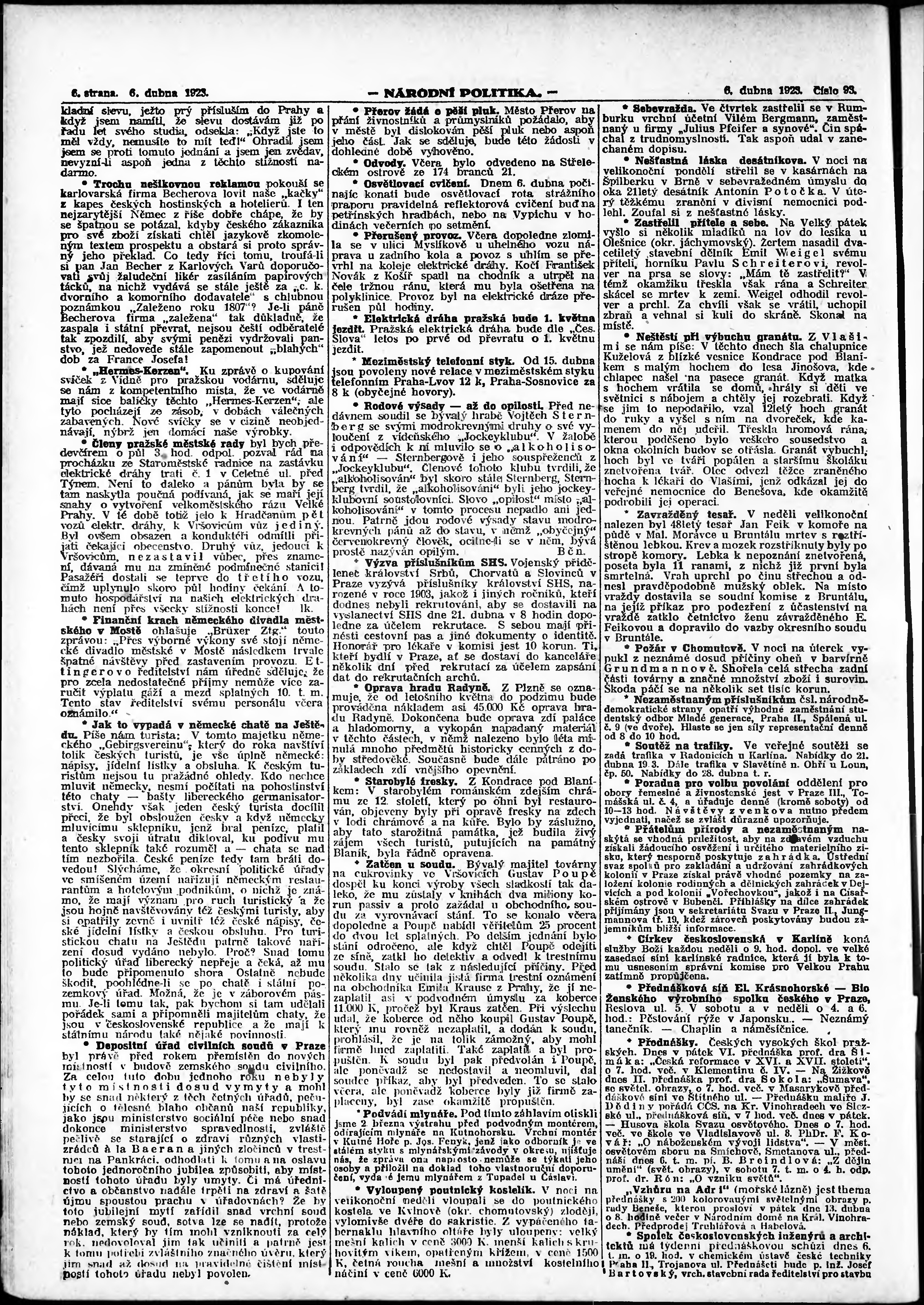* Datum vydání výtisku: 6.4.1923 Číslo výtisku: 93 Poznámky k výtisku: ranní vydání; vydání pro Prahu;