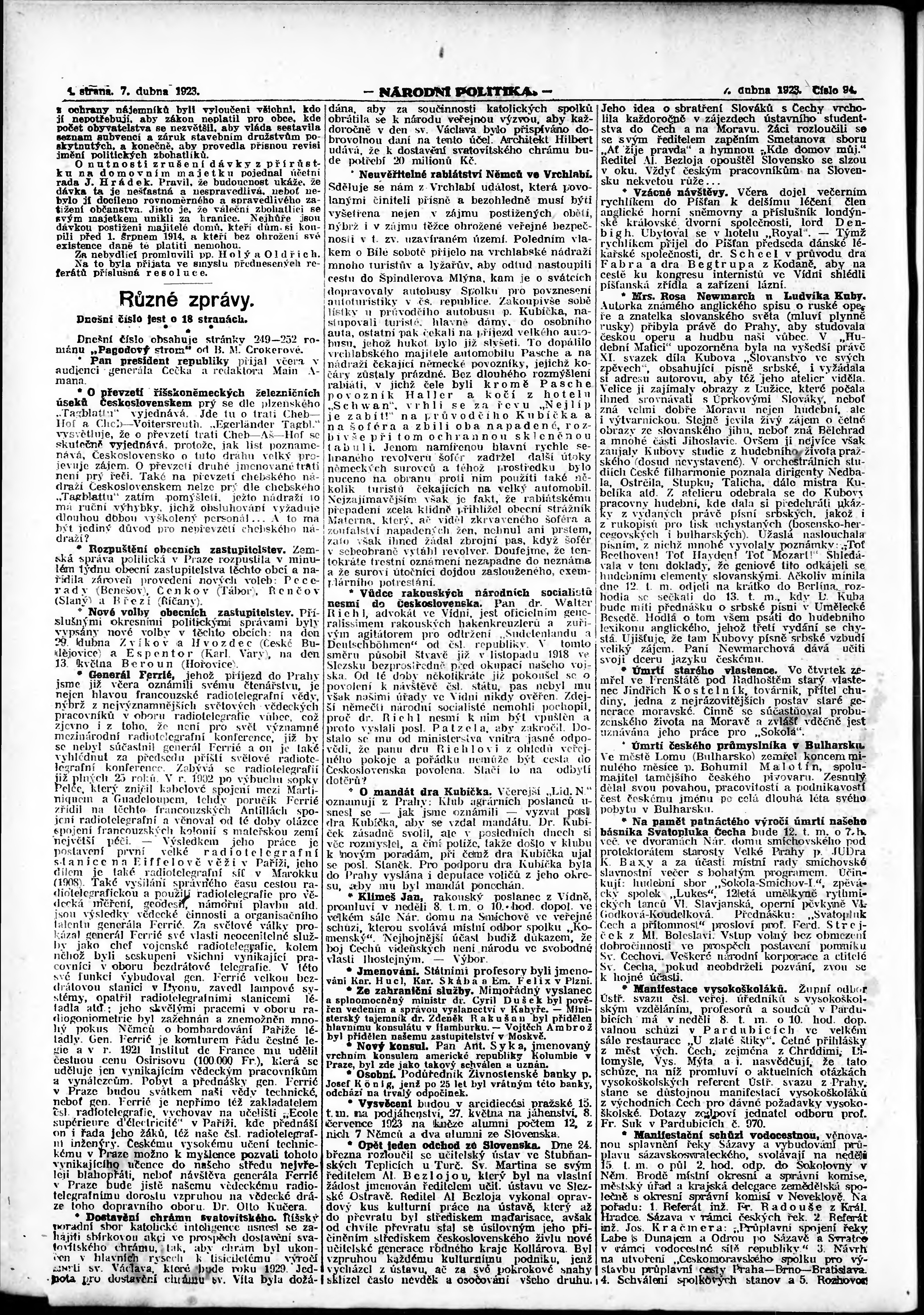 ranní vydání; vydání pro Prahu;
