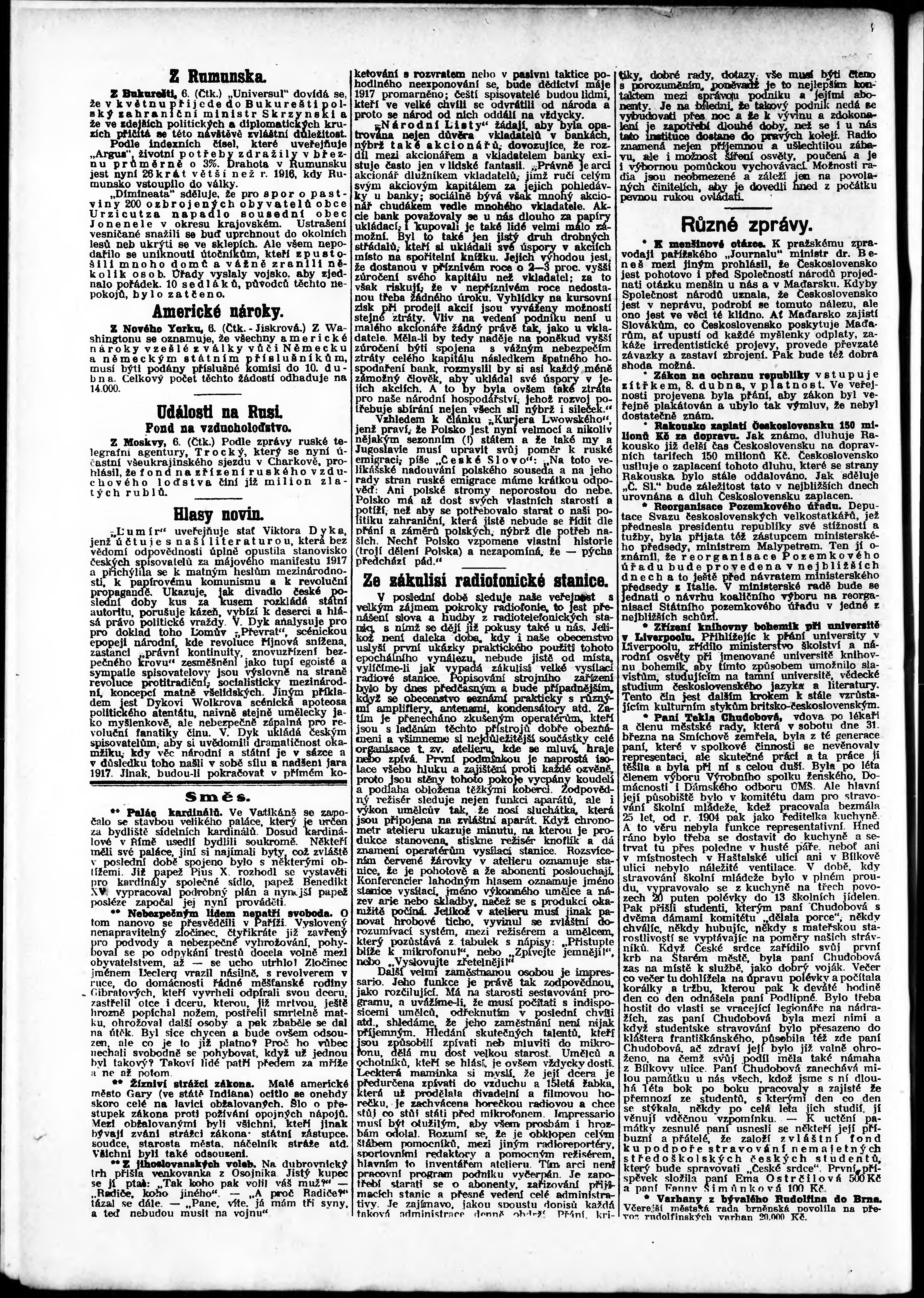 * Datum vydání výtisku: 7.4.1923 Číslo výtisku: 94 Poznámky k výtisku: odpolední vydání;