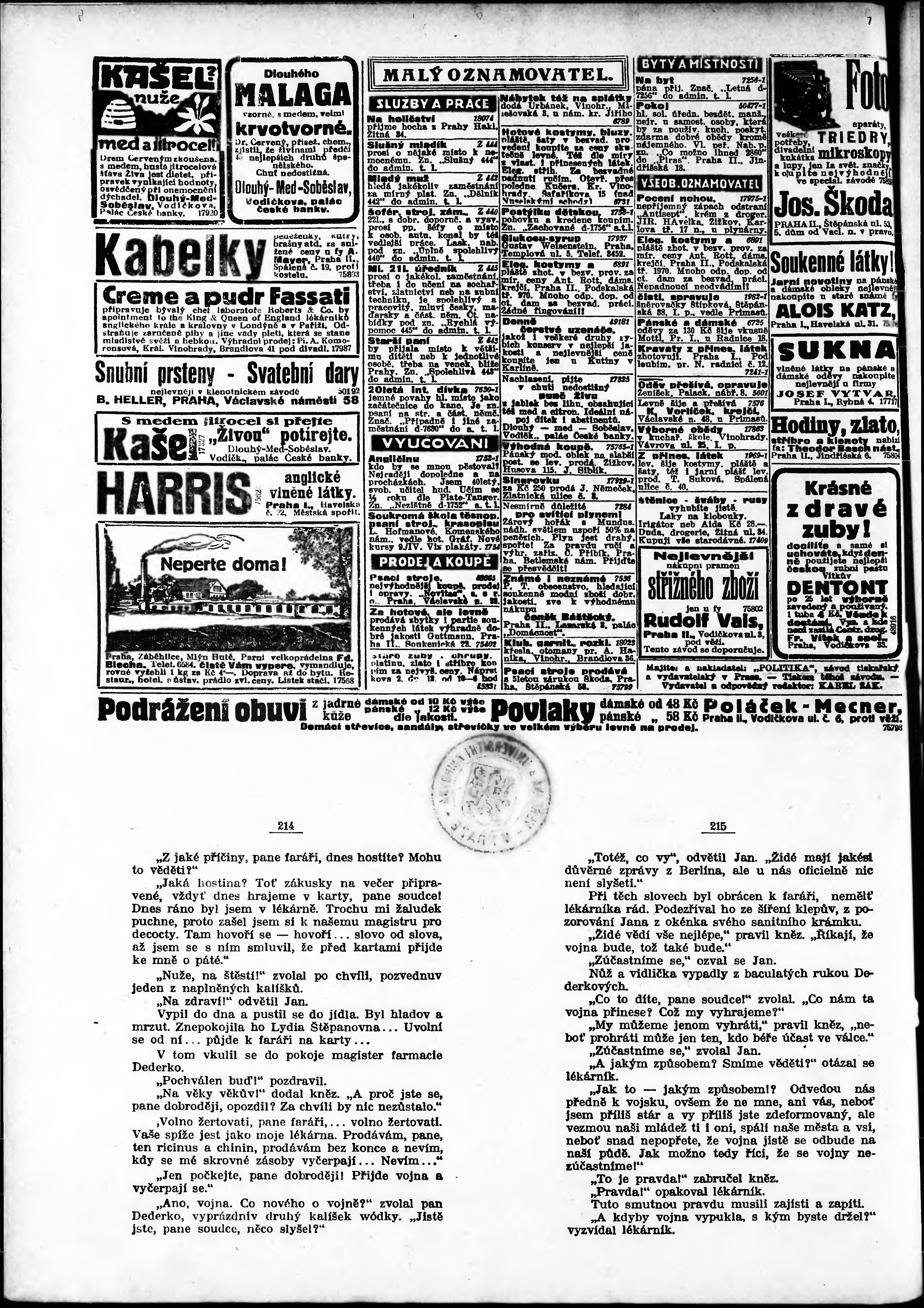 * Datum vydání výtisku: 7.4.1923 Číslo výtisku: 94 Poznámky k výtisku: odpolední vydání;