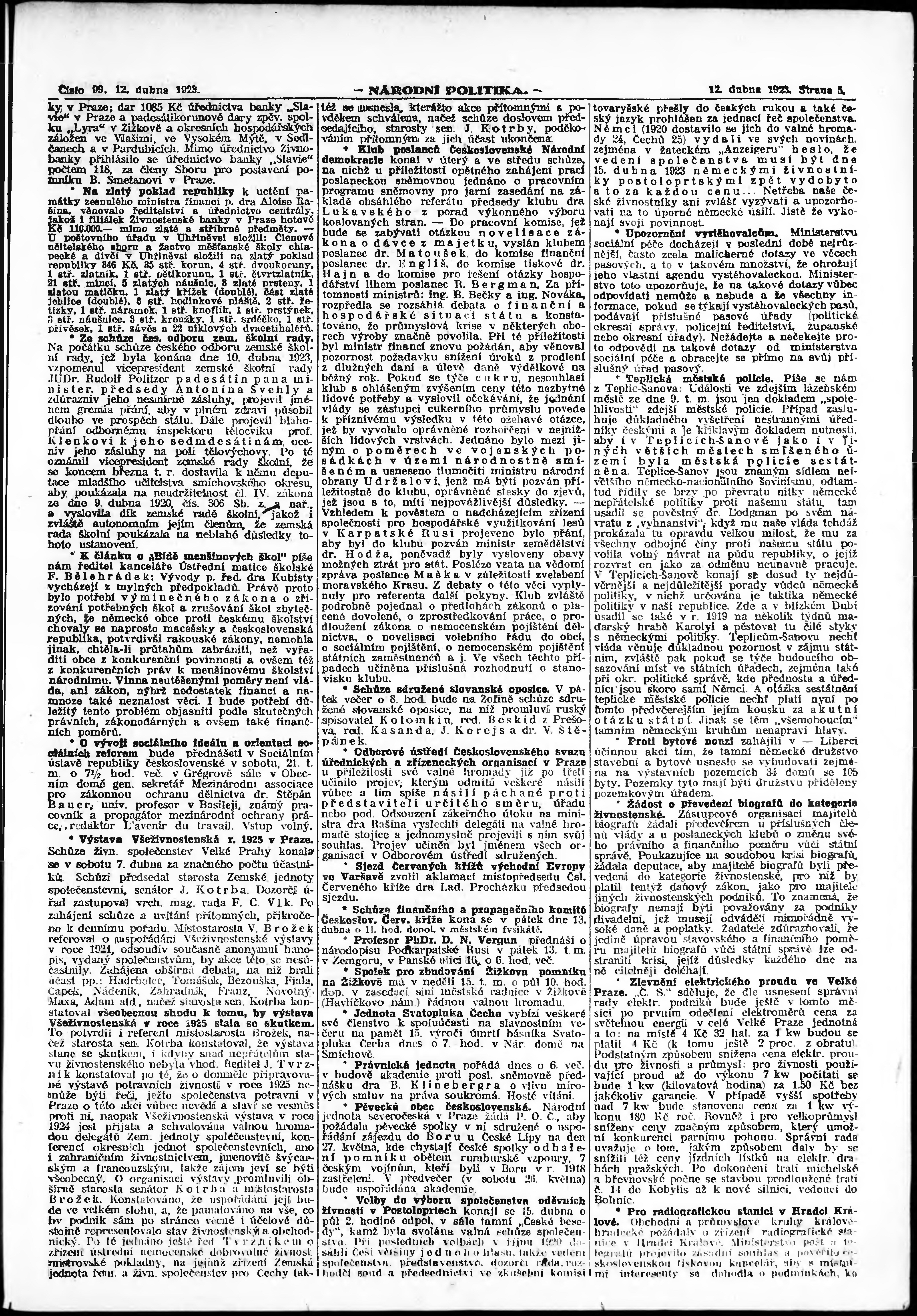 * Datum vydání výtisku: 12.4.1923 Číslo výtisku: 99 Poznámky k výtisku: ranní vydání; vydání pro Prahu;