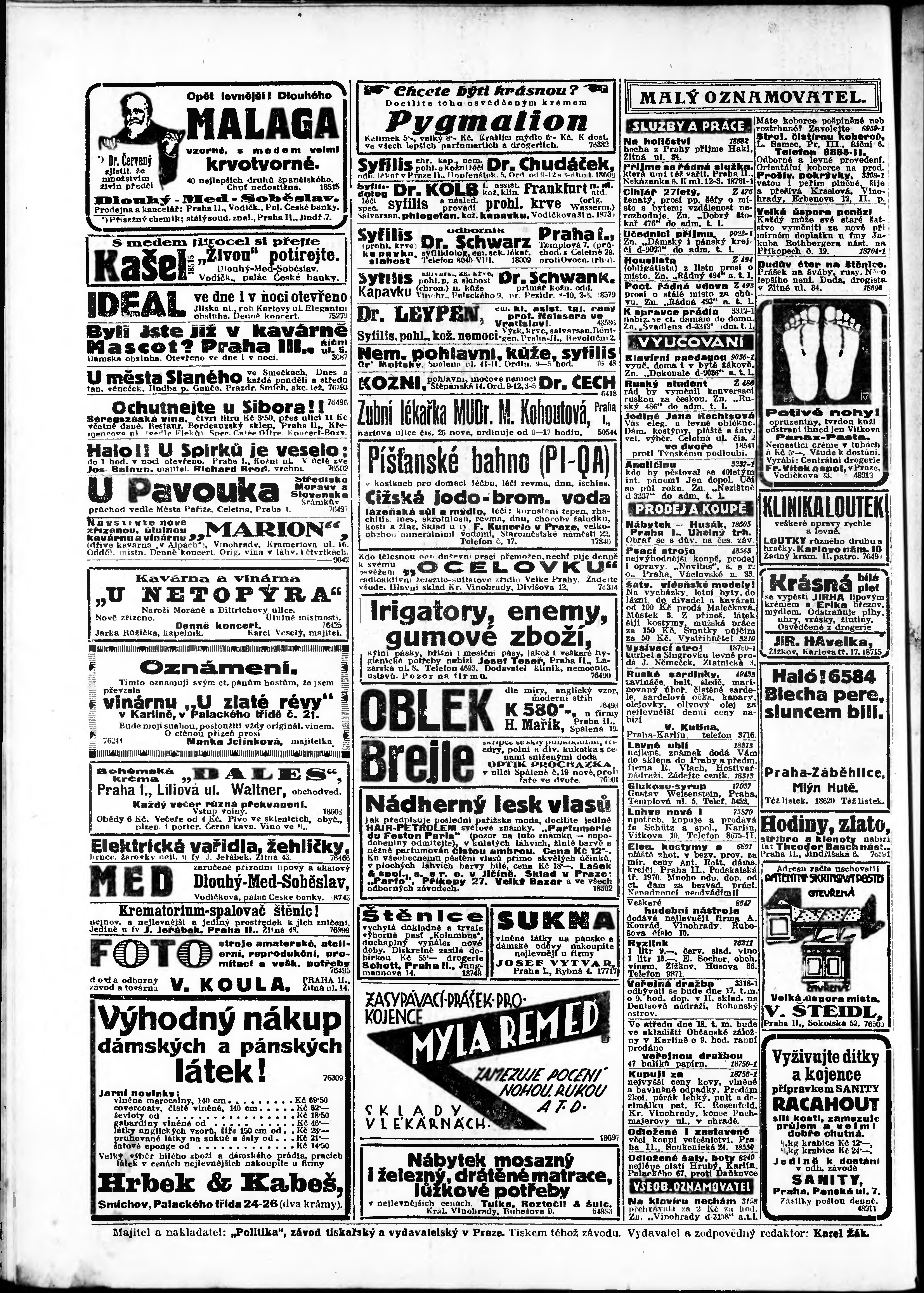 * Datum vydání výtisku: 16.4.1923 Číslo výtisku: 103 Poznámky k výtisku: odpolední vydání;