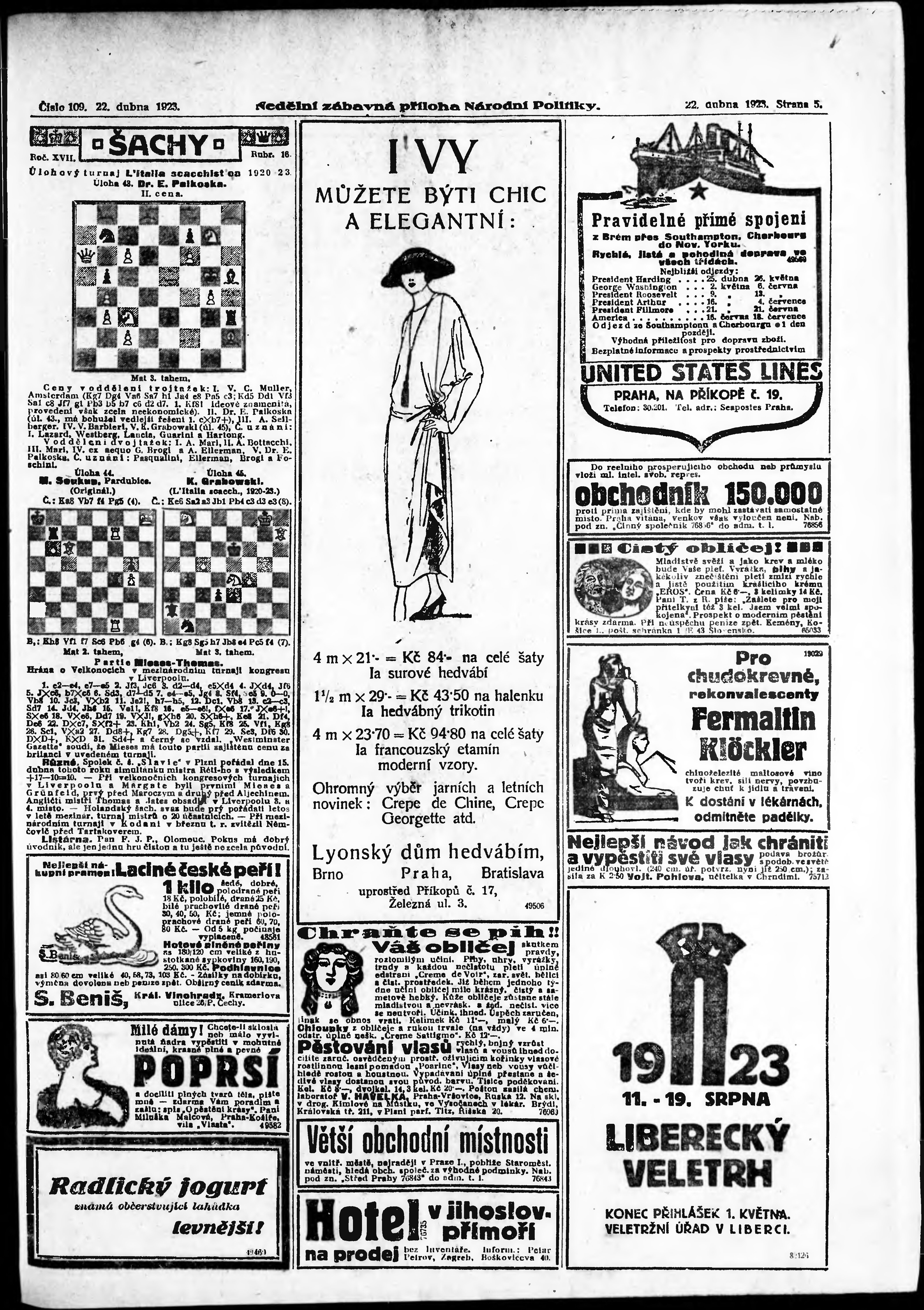 * Datum vydání výtisku: 22.4.1923 Číslo výtisku: 109 Typ výtisku: příloha