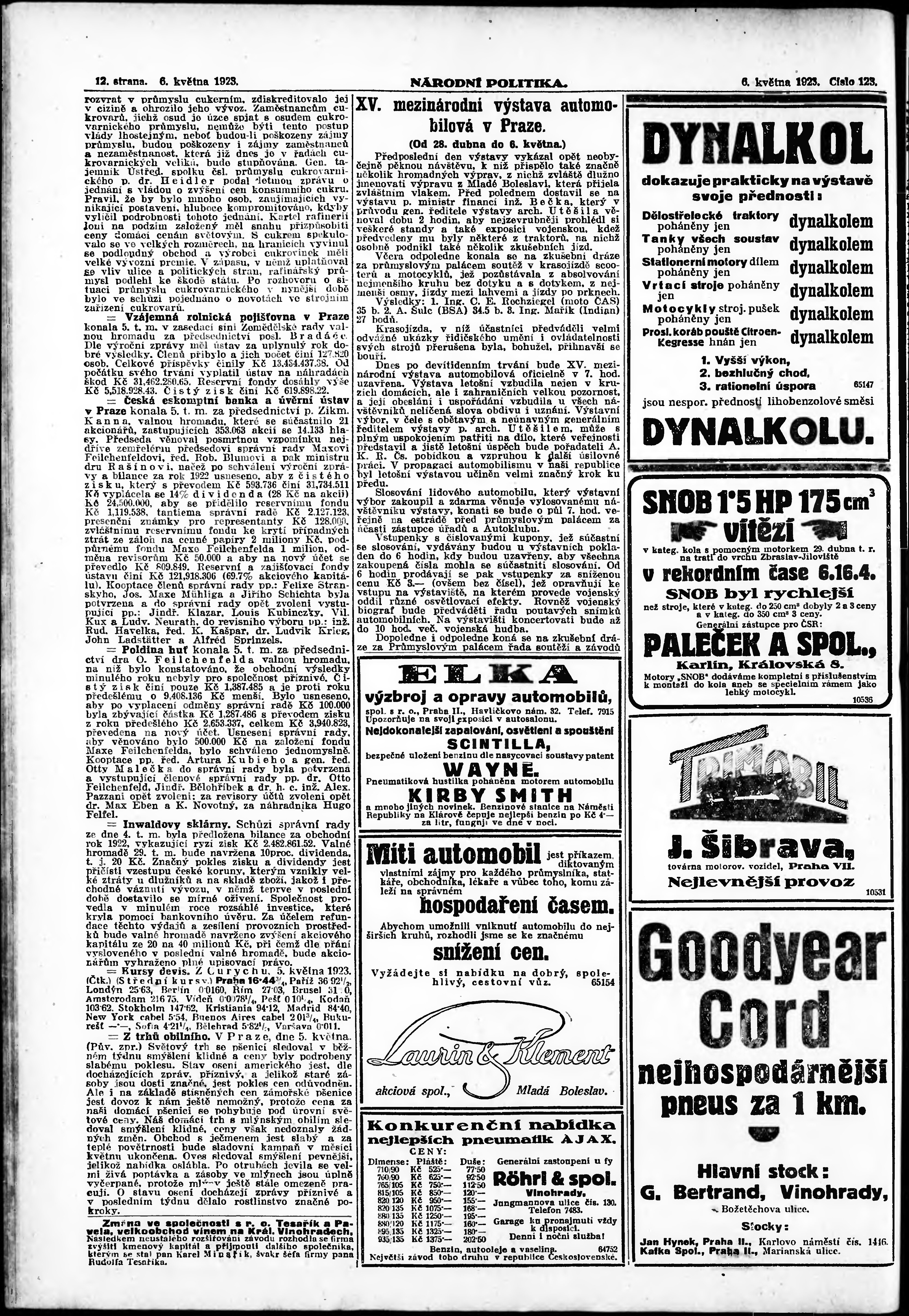 * Datum vydání výtisku: 6.5.1923 Číslo výtisku: 123 Poznámky k výtisku: ranní vydání;