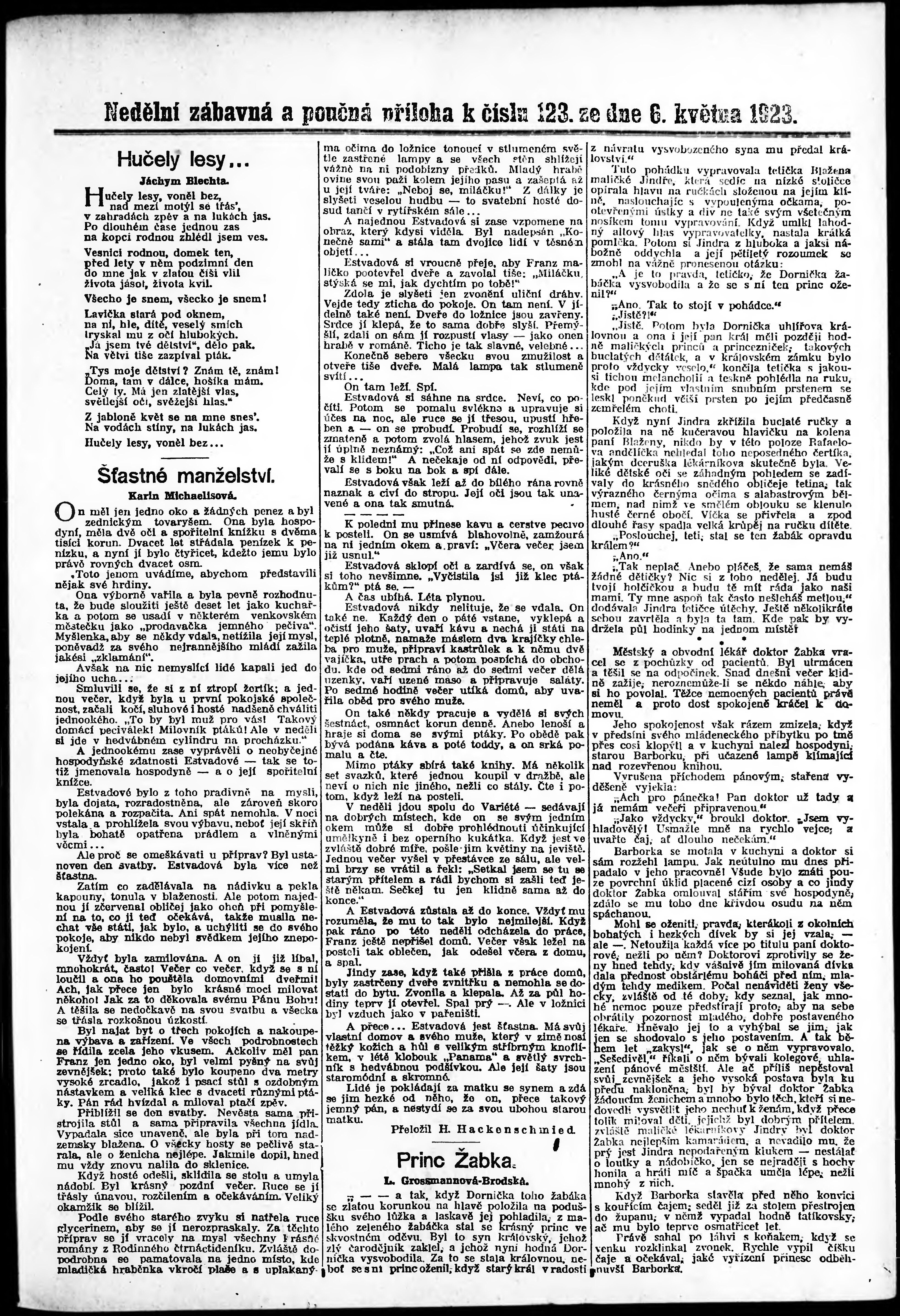 * Datum vydání výtisku: 6.5.1923 Číslo výtisku: 123 Typ výtisku: příloha