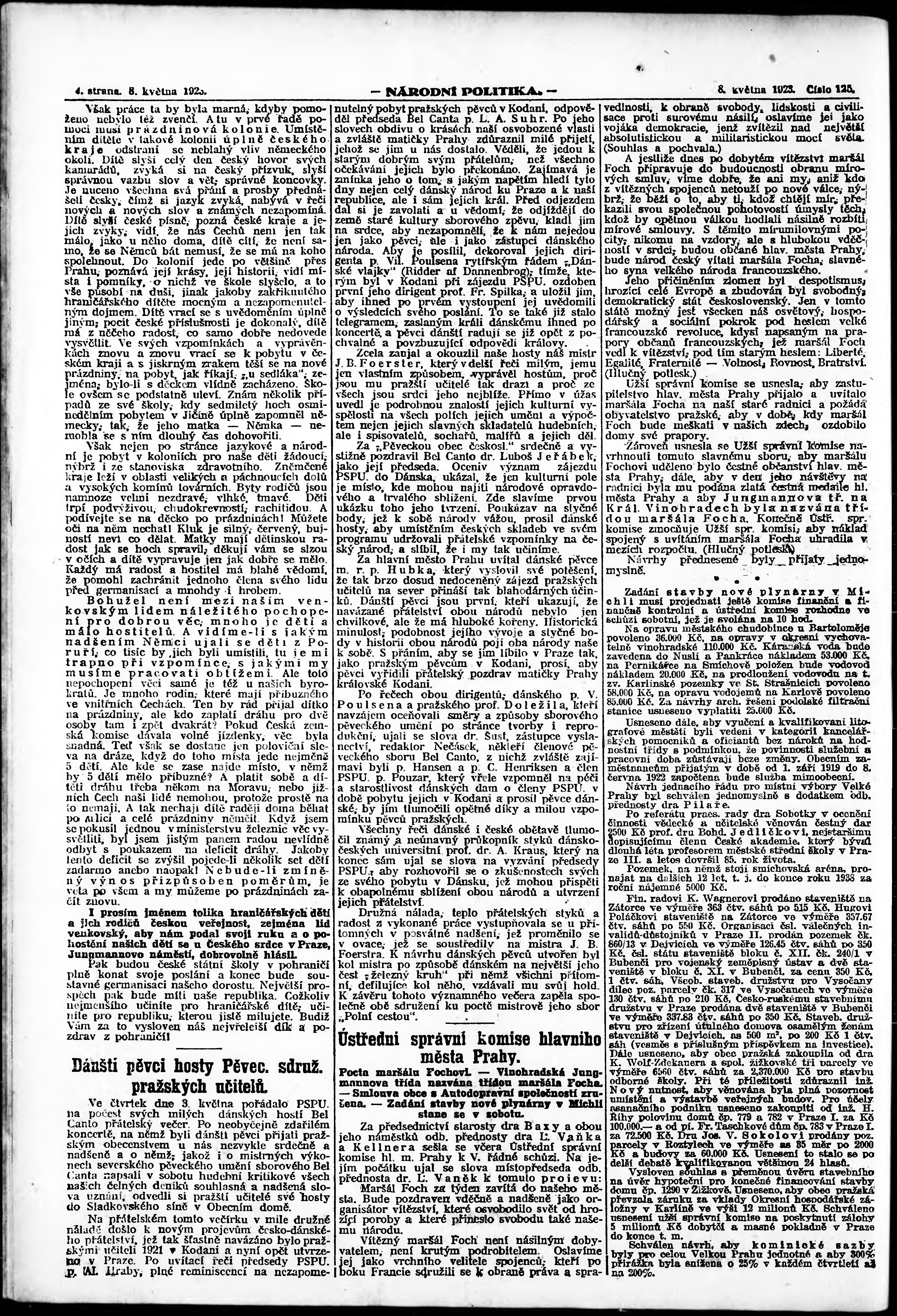 * Datum vydání výtisku: 8.5.1923 Číslo výtisku: 125 Poznámky k výtisku: ranní vydání; vydání pro Prahu;