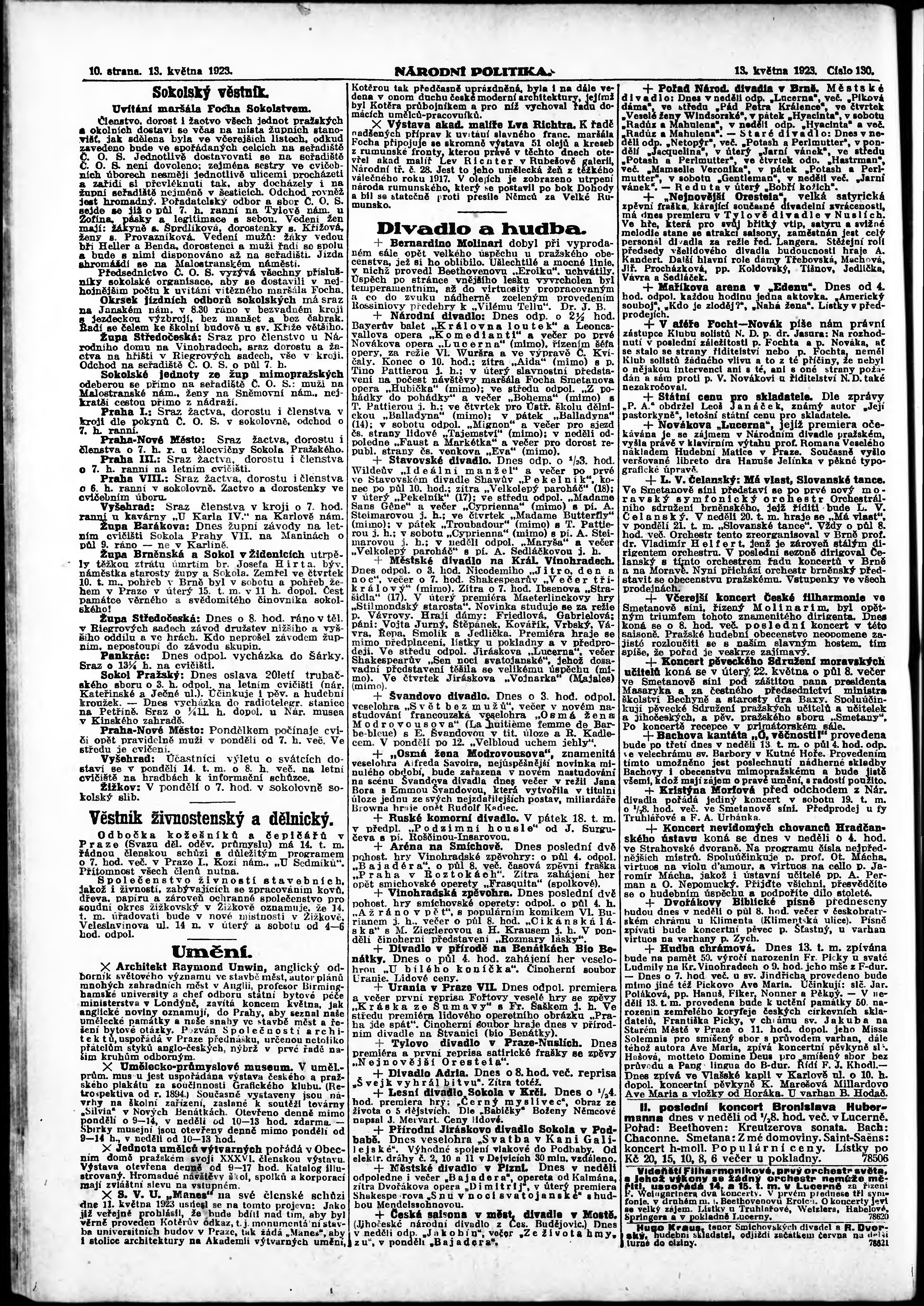 * Datum vydání výtisku: 13.5.1923 Číslo výtisku: 130 Poznámky k výtisku: ranní vydání;