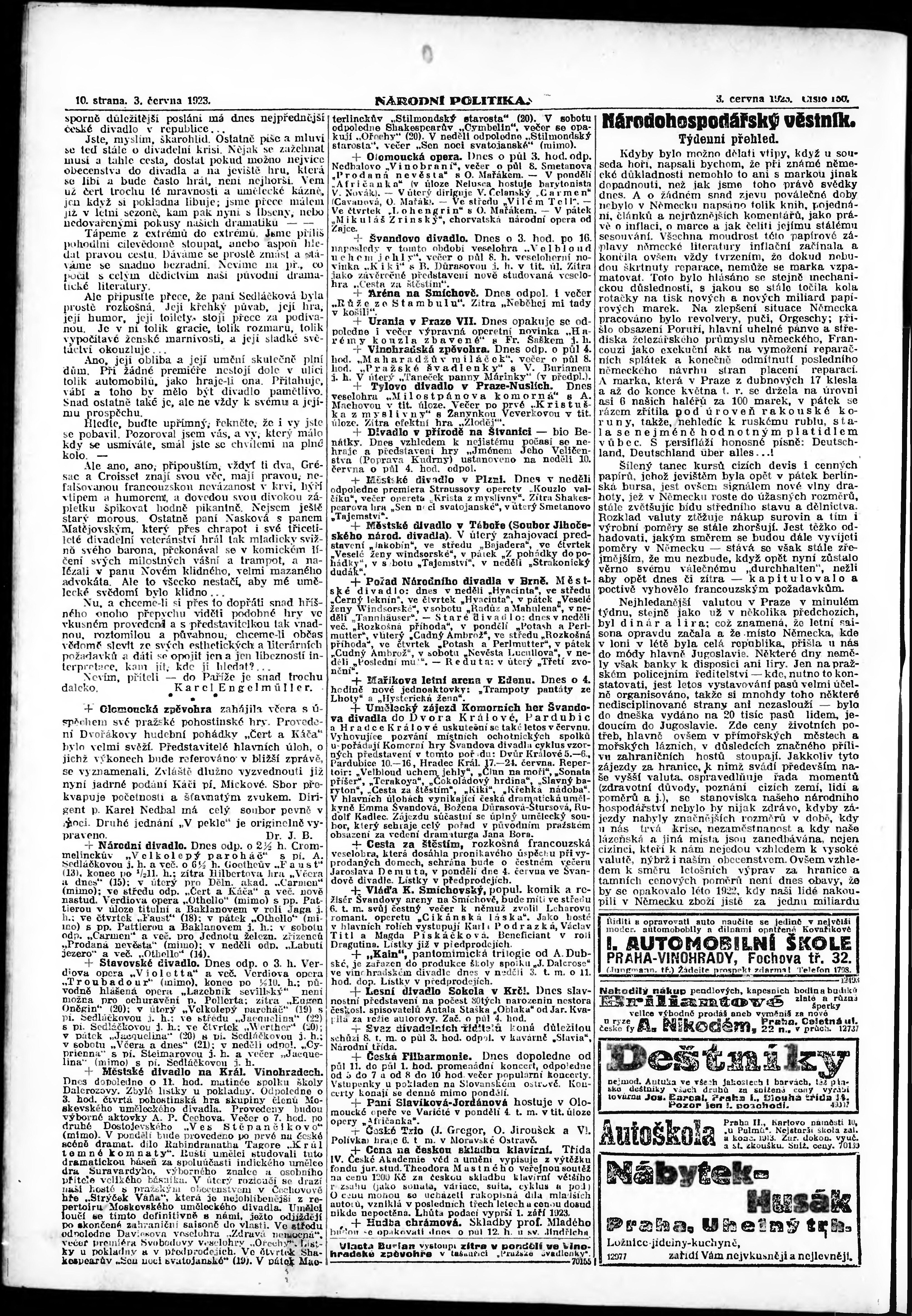 * Datum vydání výtisku: 3.6.1923 Číslo výtisku: 150 Poznámky k výtisku: ranní vydání;