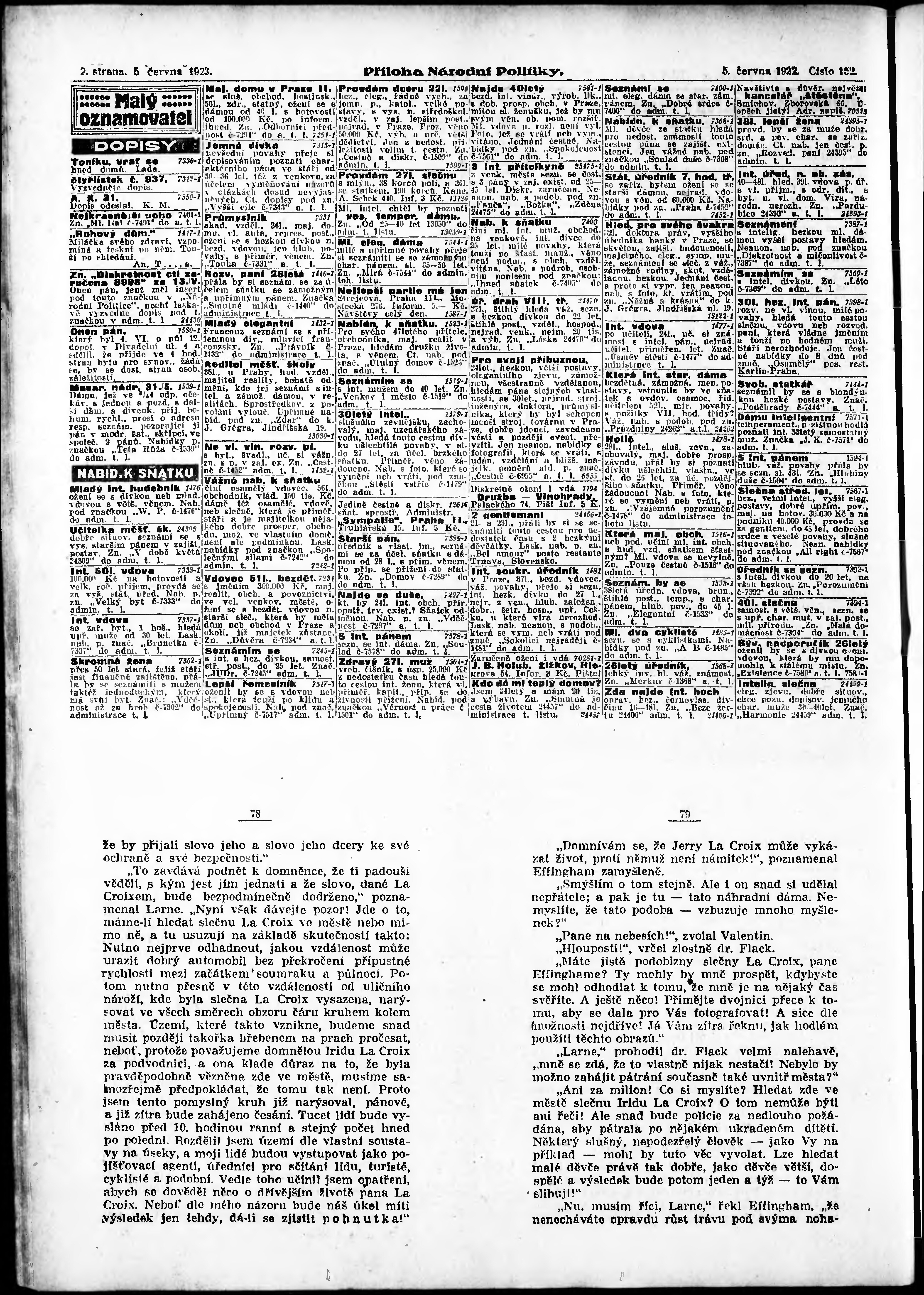 * Datum vydání výtisku: 5.6.1923 Číslo výtisku: 152 Typ výtisku: příloha