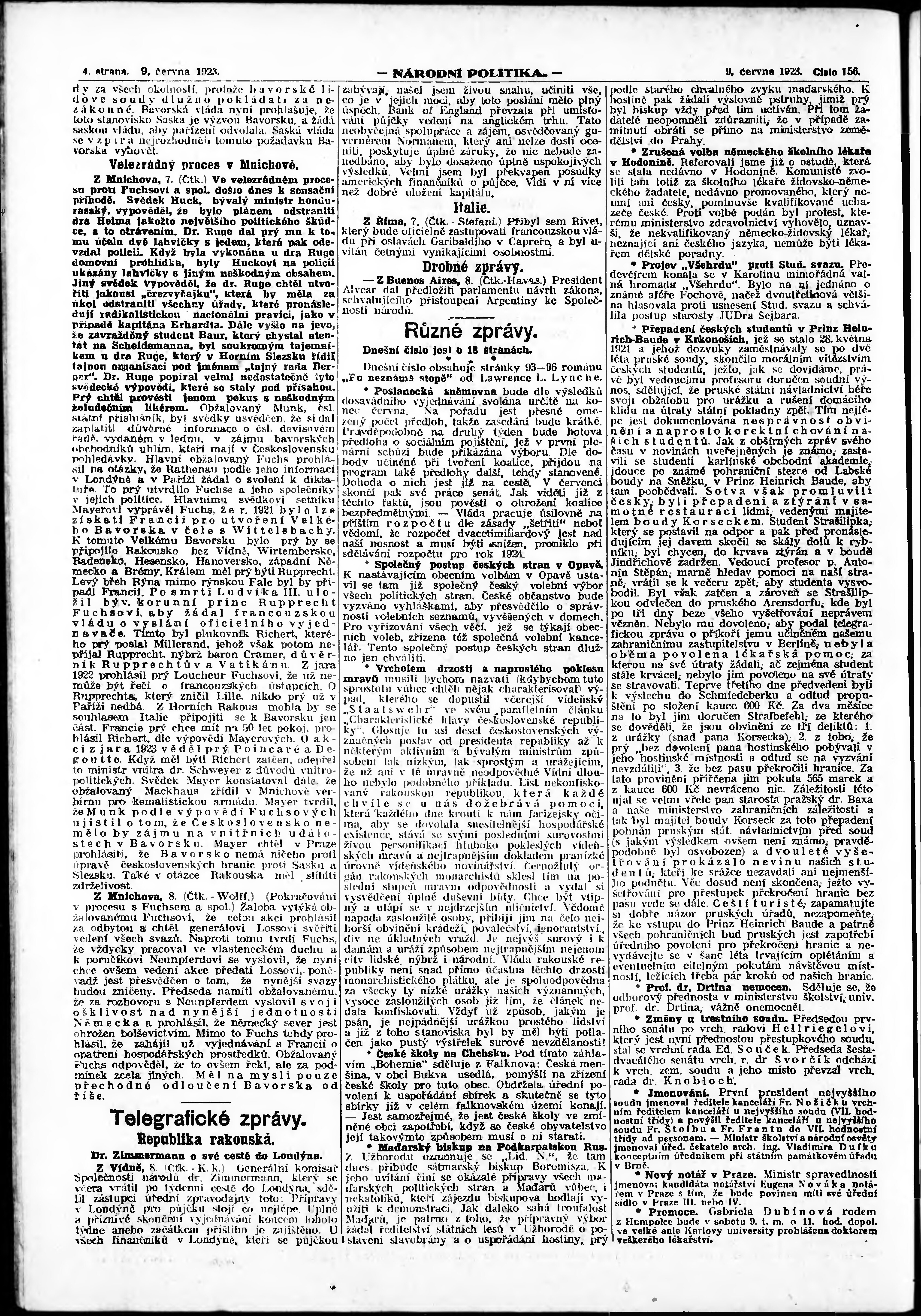 * Datum vydání výtisku: 9.6.1923 Číslo výtisku: 156 Poznámky k výtisku: ranní vydání; vydání pro Prahu;