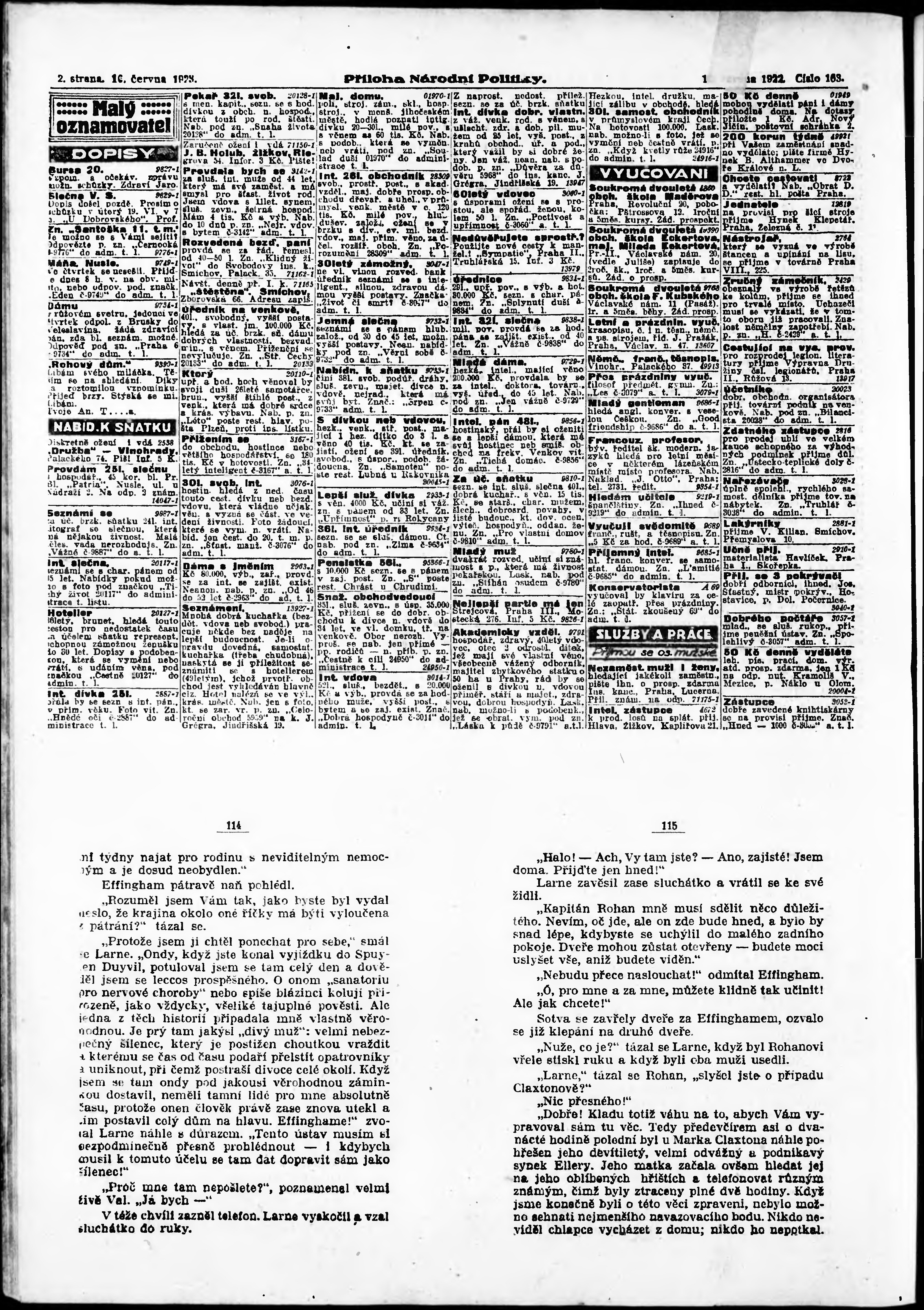 * Datum vydání výtisku: 16.6.1923 Číslo výtisku: 163 Typ výtisku: příloha
