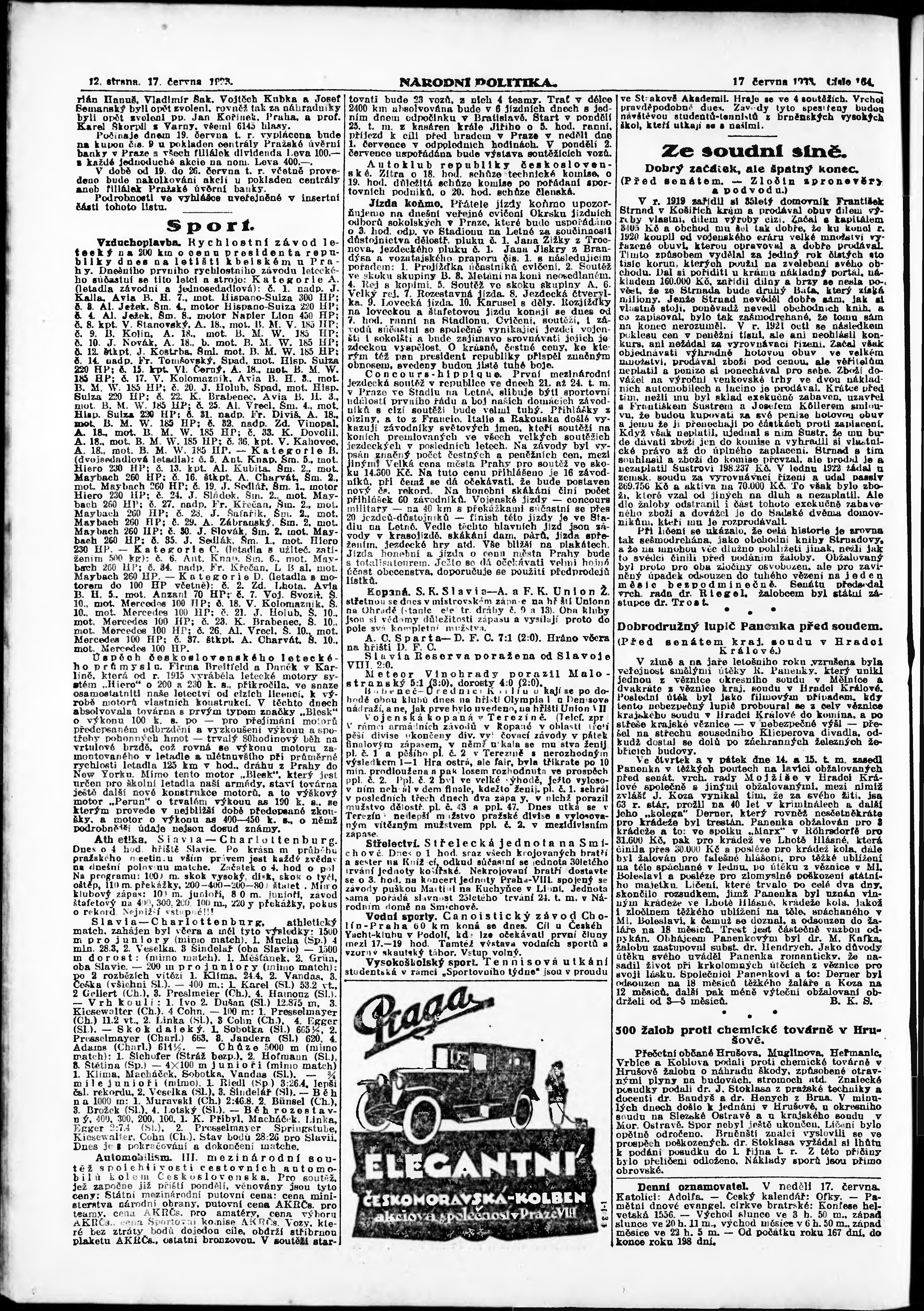 * Datum vydání výtisku: 17.6.1923 Číslo výtisku: 164 Poznámky k výtisku: ranní vydání;