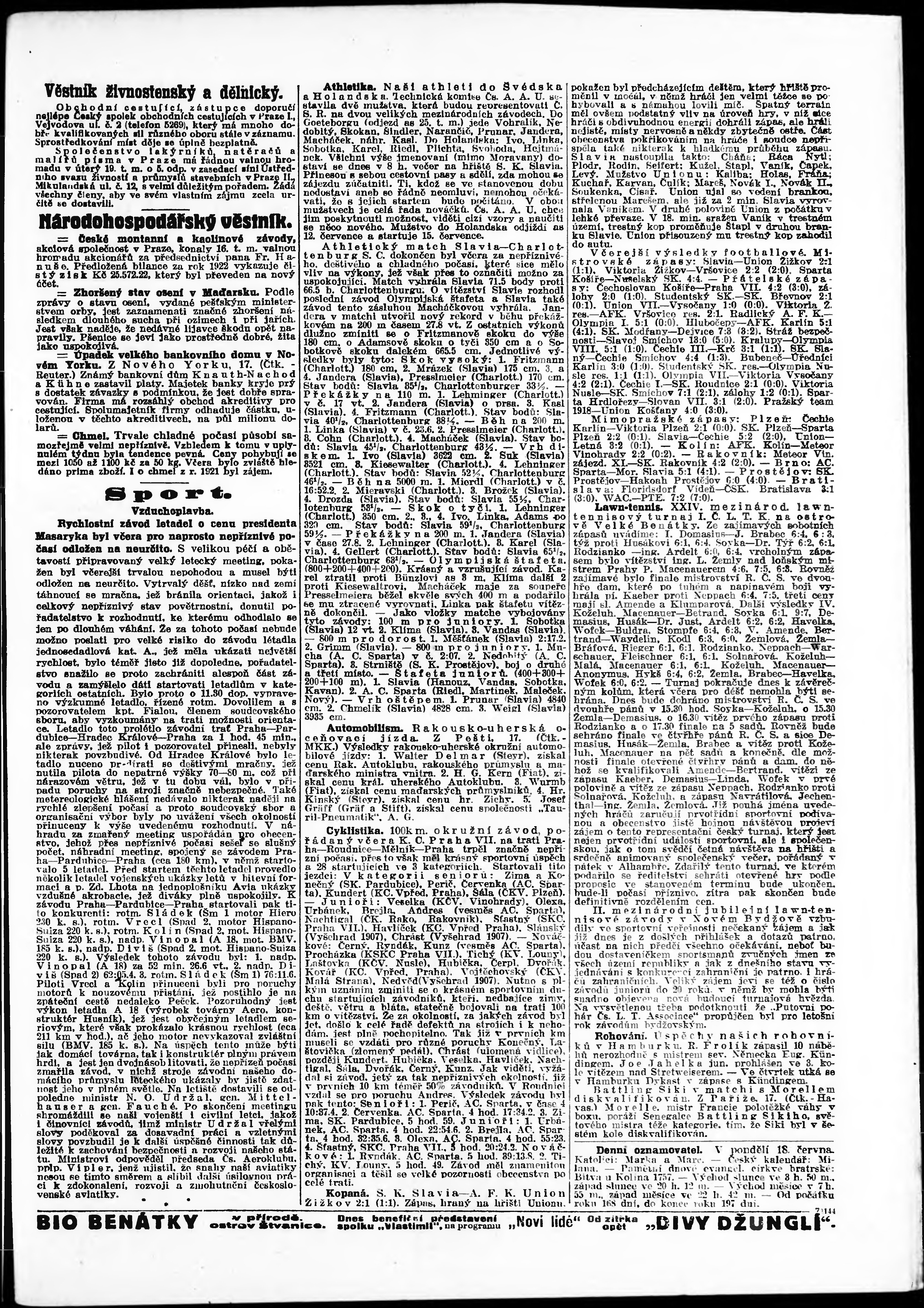 * Datum vydání výtisku: 18.6.1923 Číslo výtisku: 165 Poznámky k výtisku: odpolední vydání;