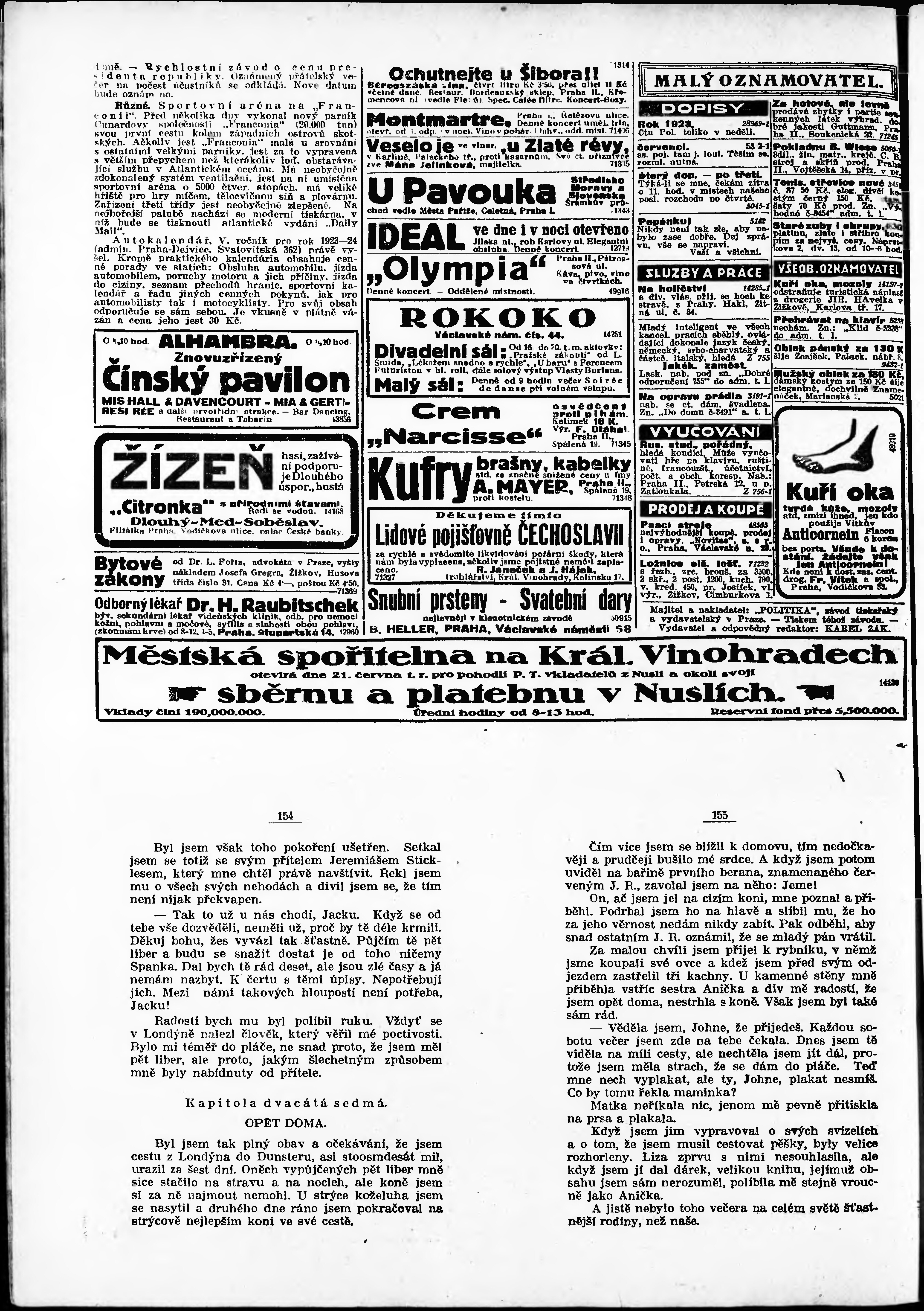 * Datum vydání výtisku: 19.6.1923 Číslo výtisku: 166 Poznámky k výtisku: odpolední vydání;
