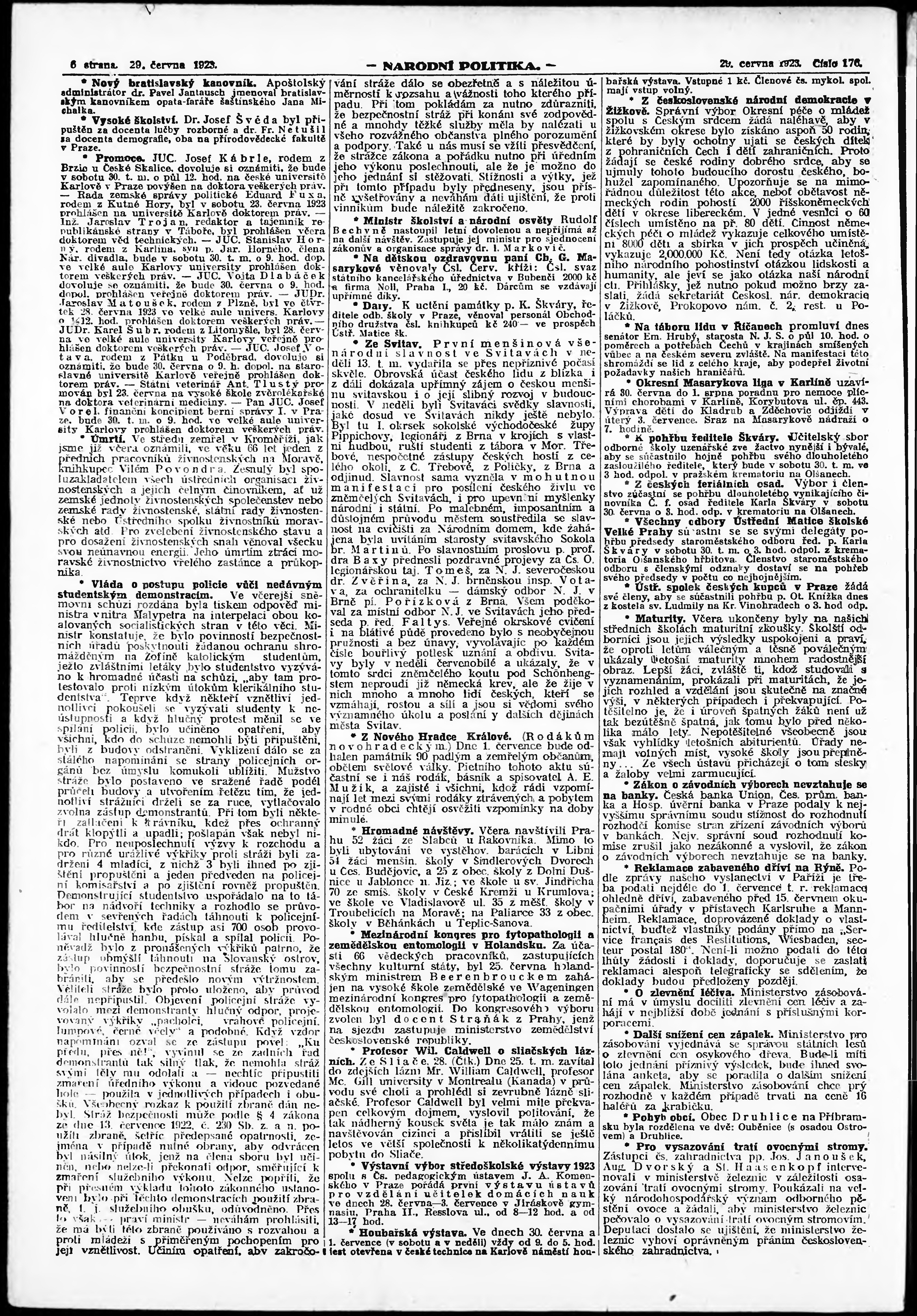 * Datum vydání výtisku: 29.6.1923 Číslo výtisku: 176 Poznámky k výtisku: ranní vydání;