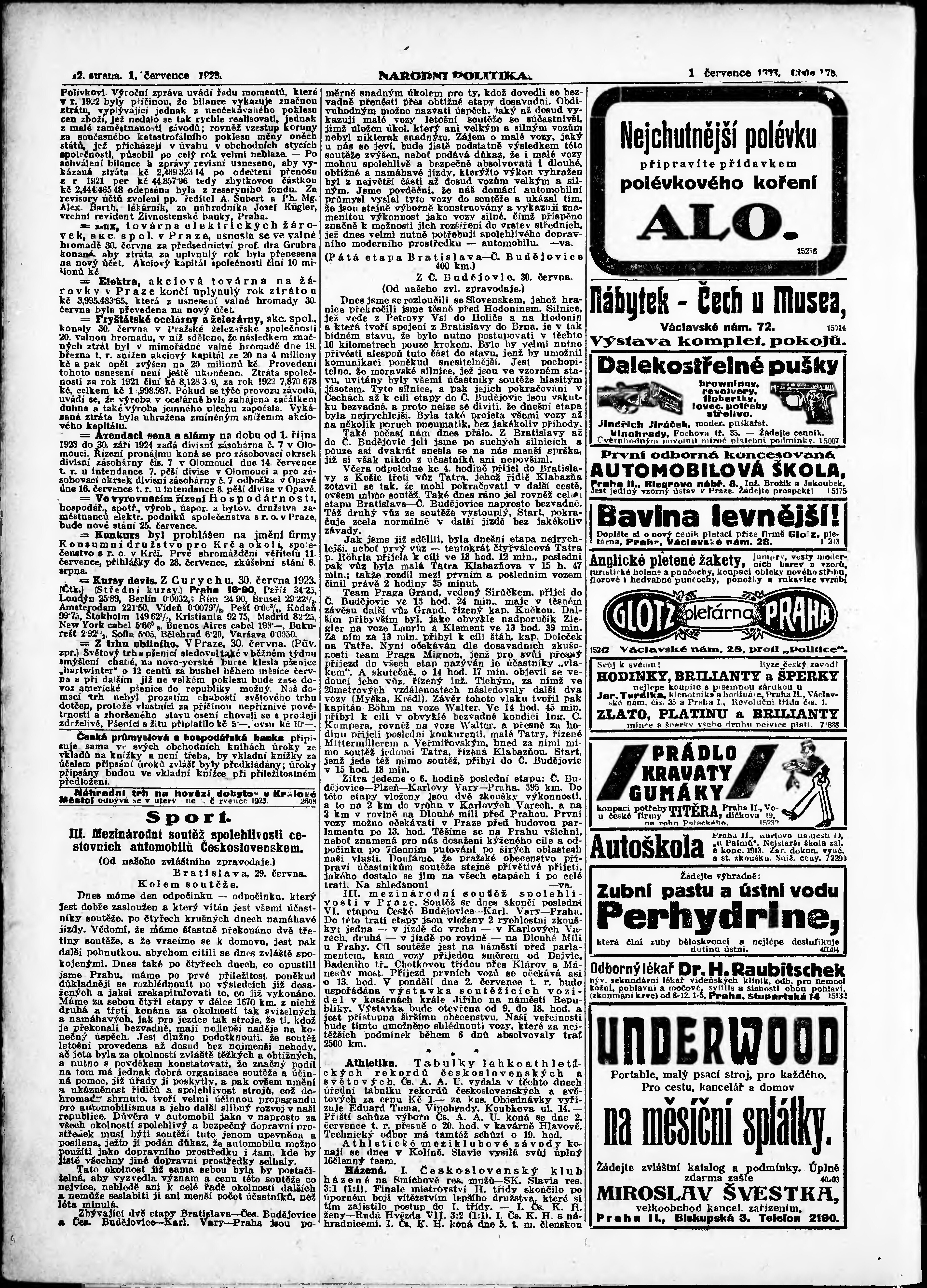* Datum vydání výtisku: 1.7.1923 Číslo výtisku: 178 Poznámky k výtisku: ranní vydání;