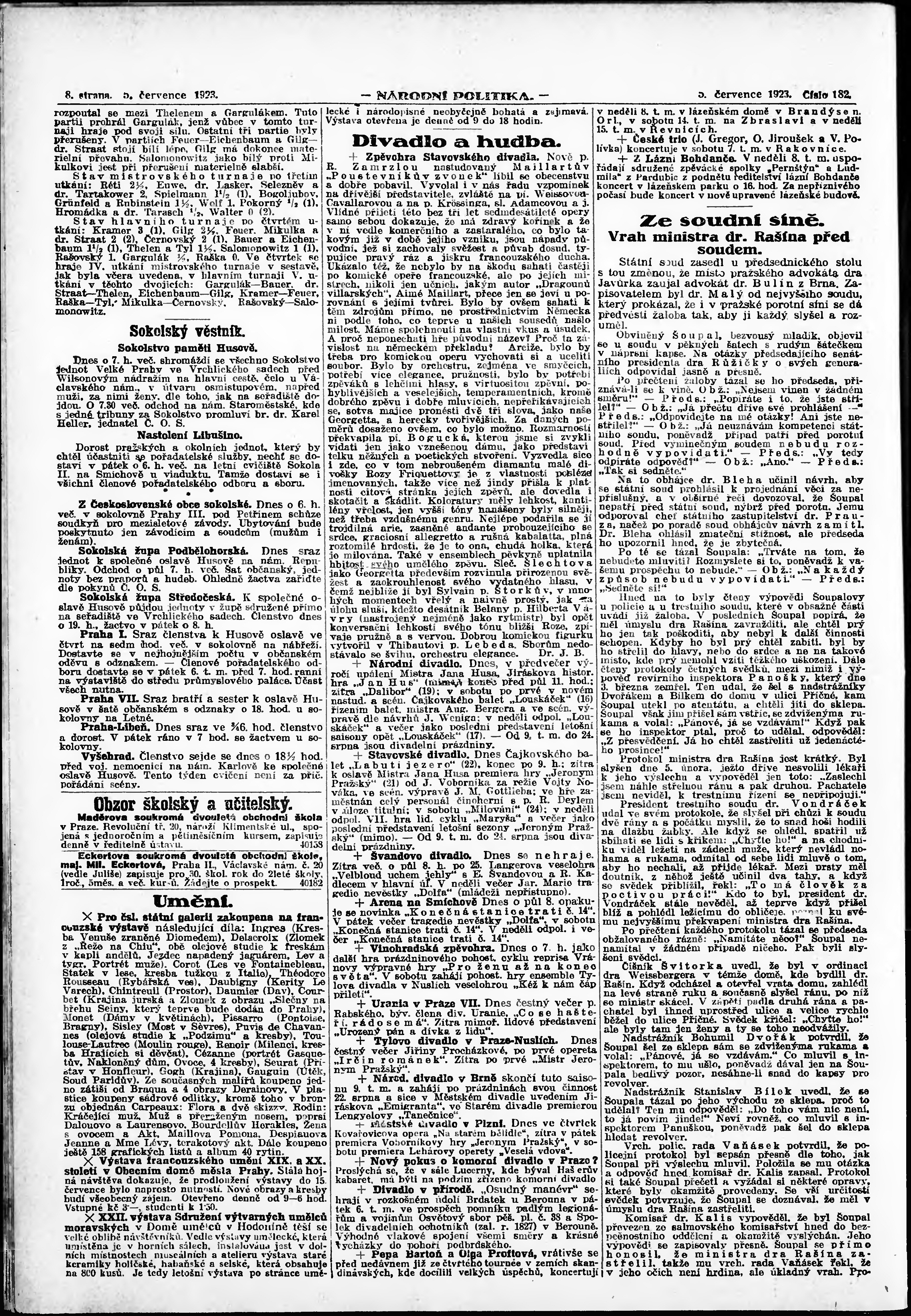 * Datum vydání výtisku: 5.7.1923 Číslo výtisku: 182 Poznámky k výtisku: ranní vydání; vydání pro Prahu;