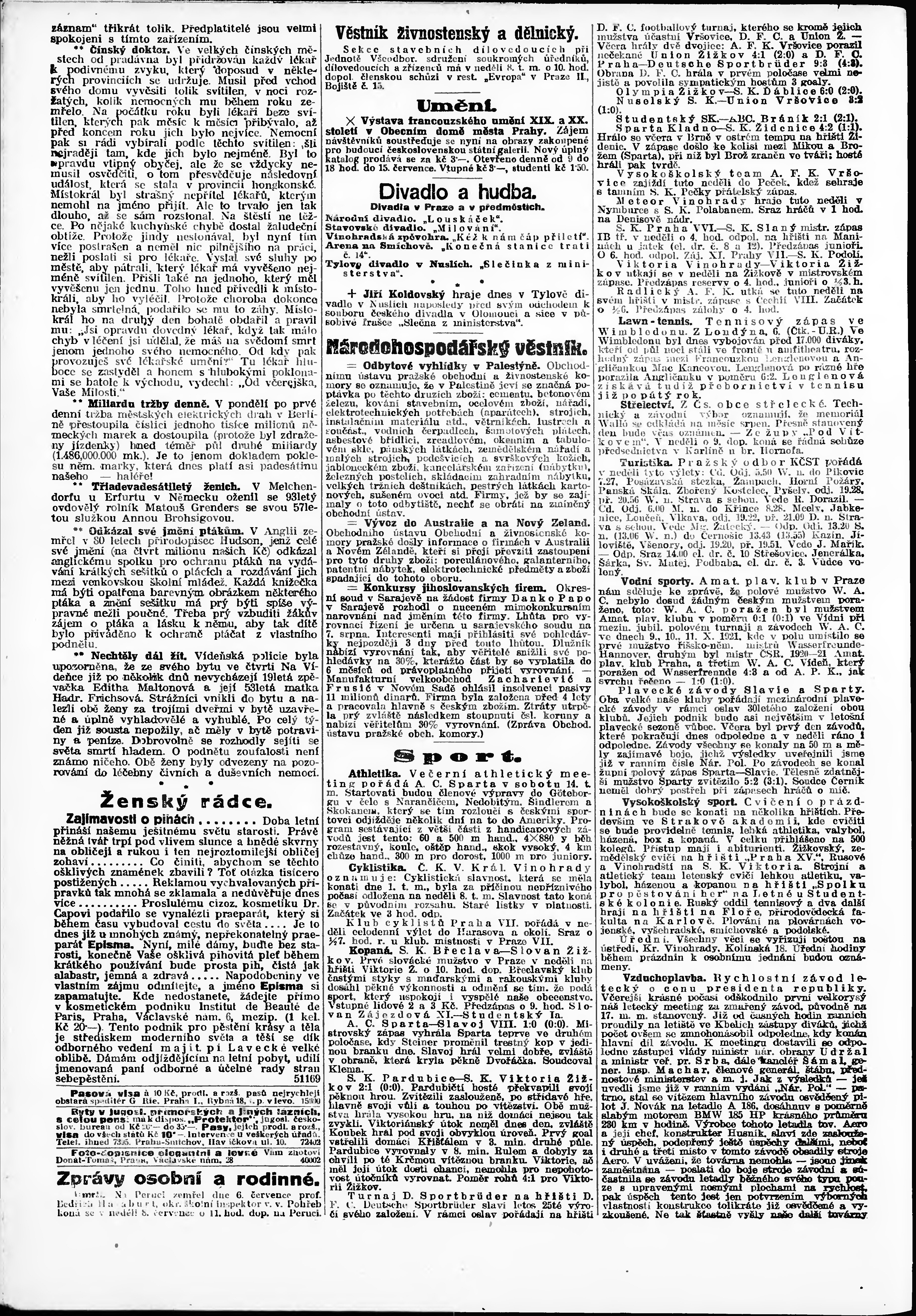 * Datum vydání výtisku: 7.7.1923 Číslo výtisku: 184 Poznámky k výtisku: odpolední vydání;