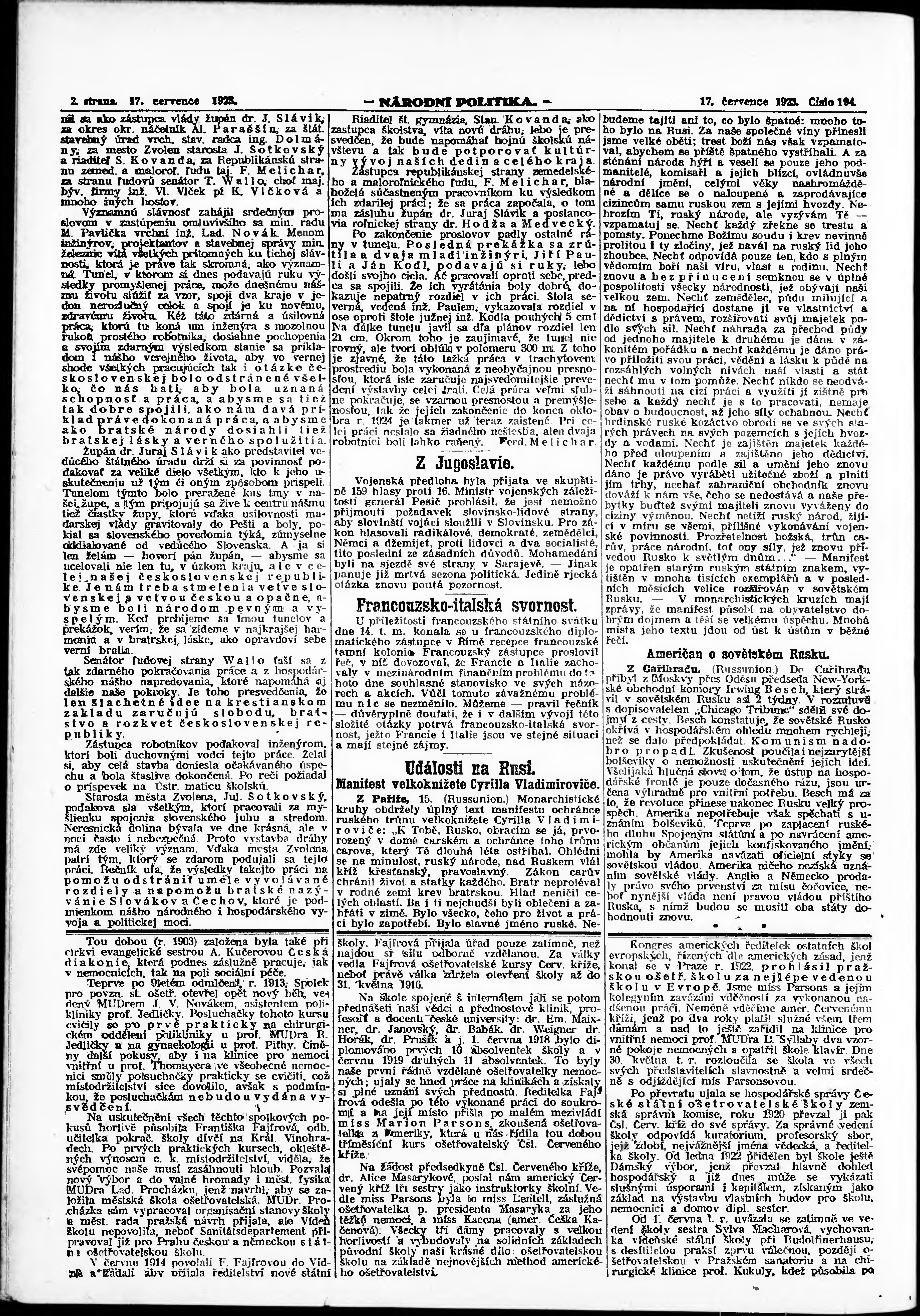 * Datum vydání výtisku: 17.7.1923 Číslo výtisku: 194 Poznámky k výtisku: ranní vydání; vydání pro Prahu;