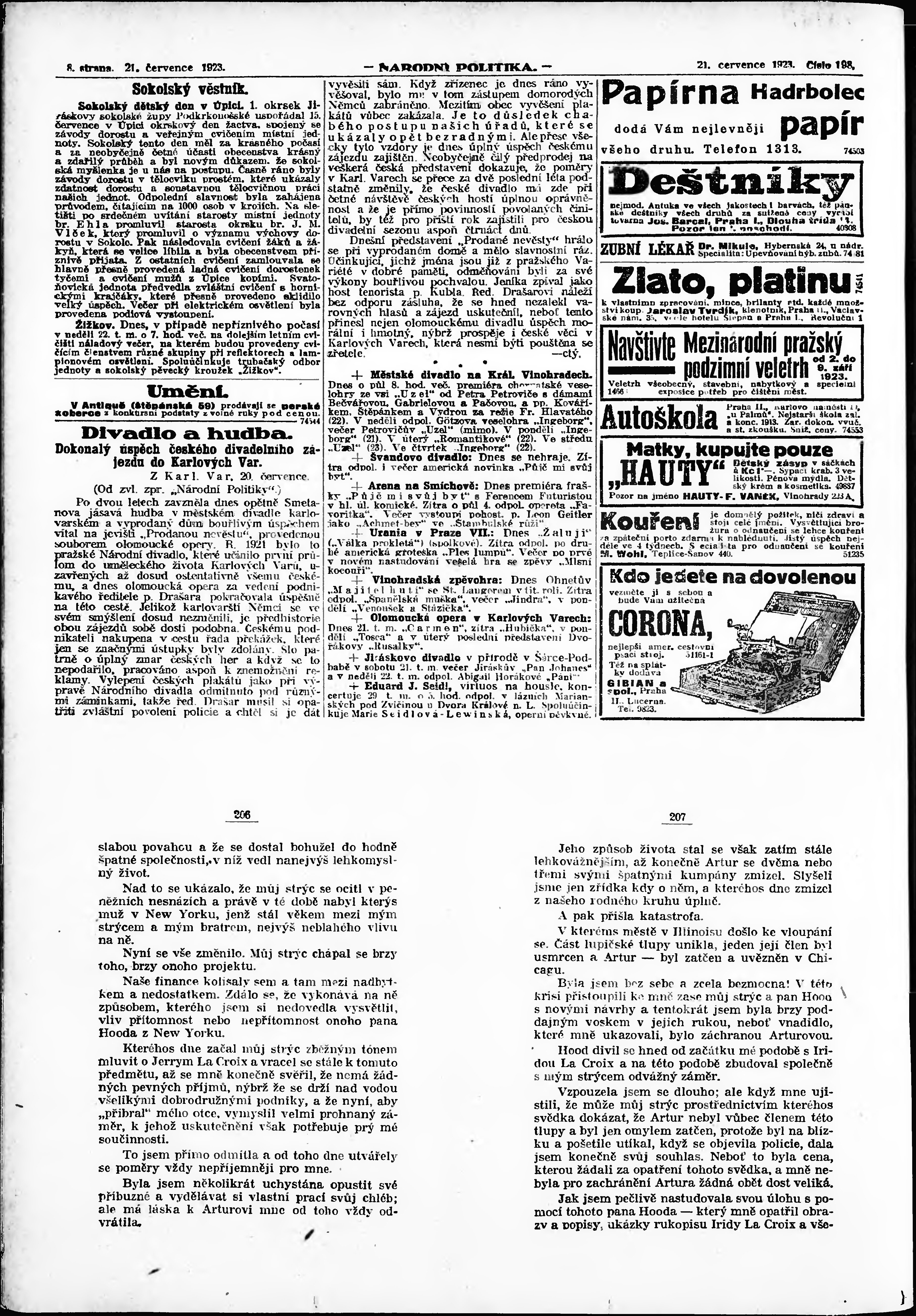 * Datum vydání výtisku: 21.7.1923 Číslo výtisku: 198 Poznámky k výtisku: ranní vydání; vydání pro Prahu;