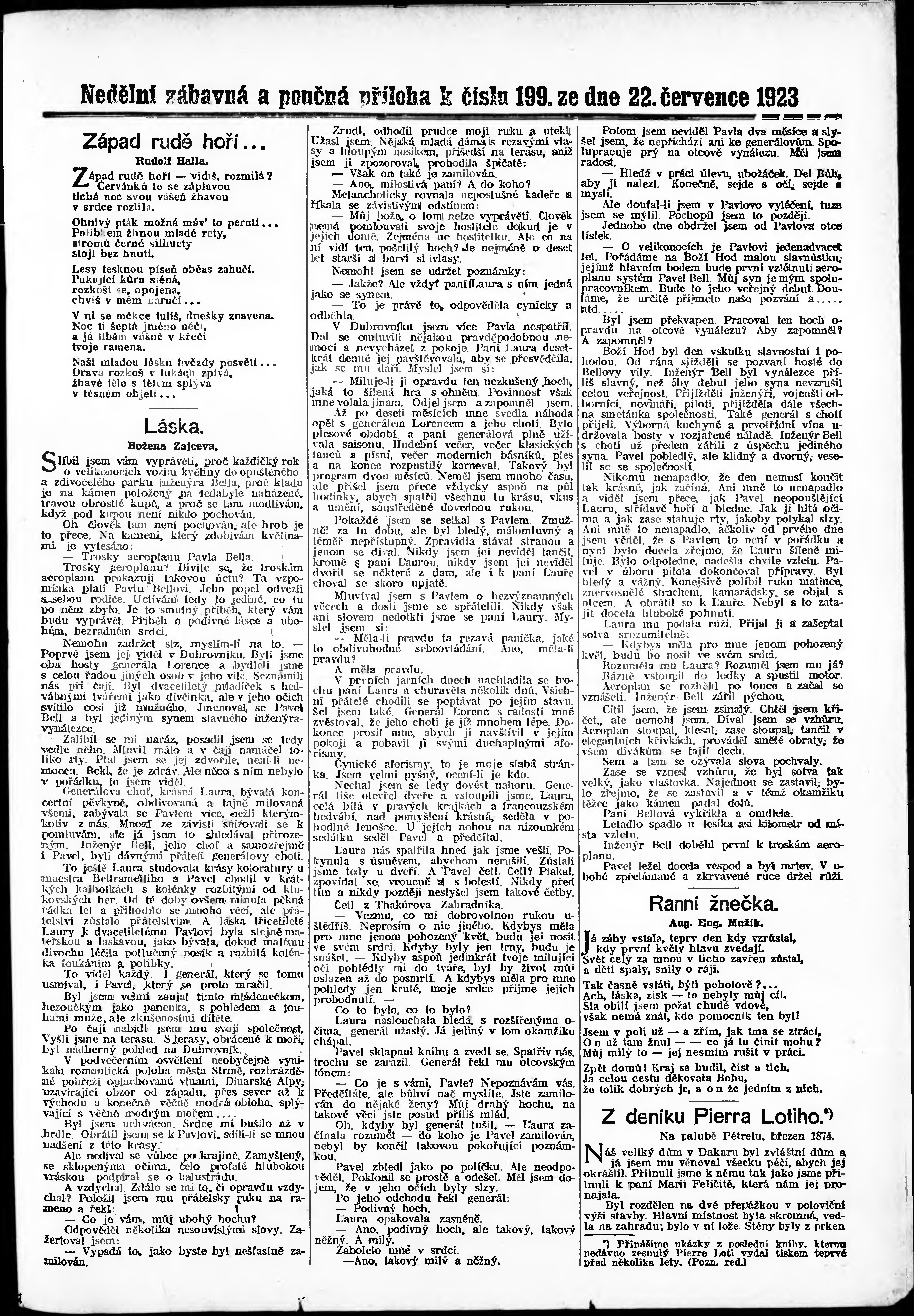 * Datum vydání výtisku: 22.7.1923 Číslo výtisku: 199 Typ výtisku: příloha