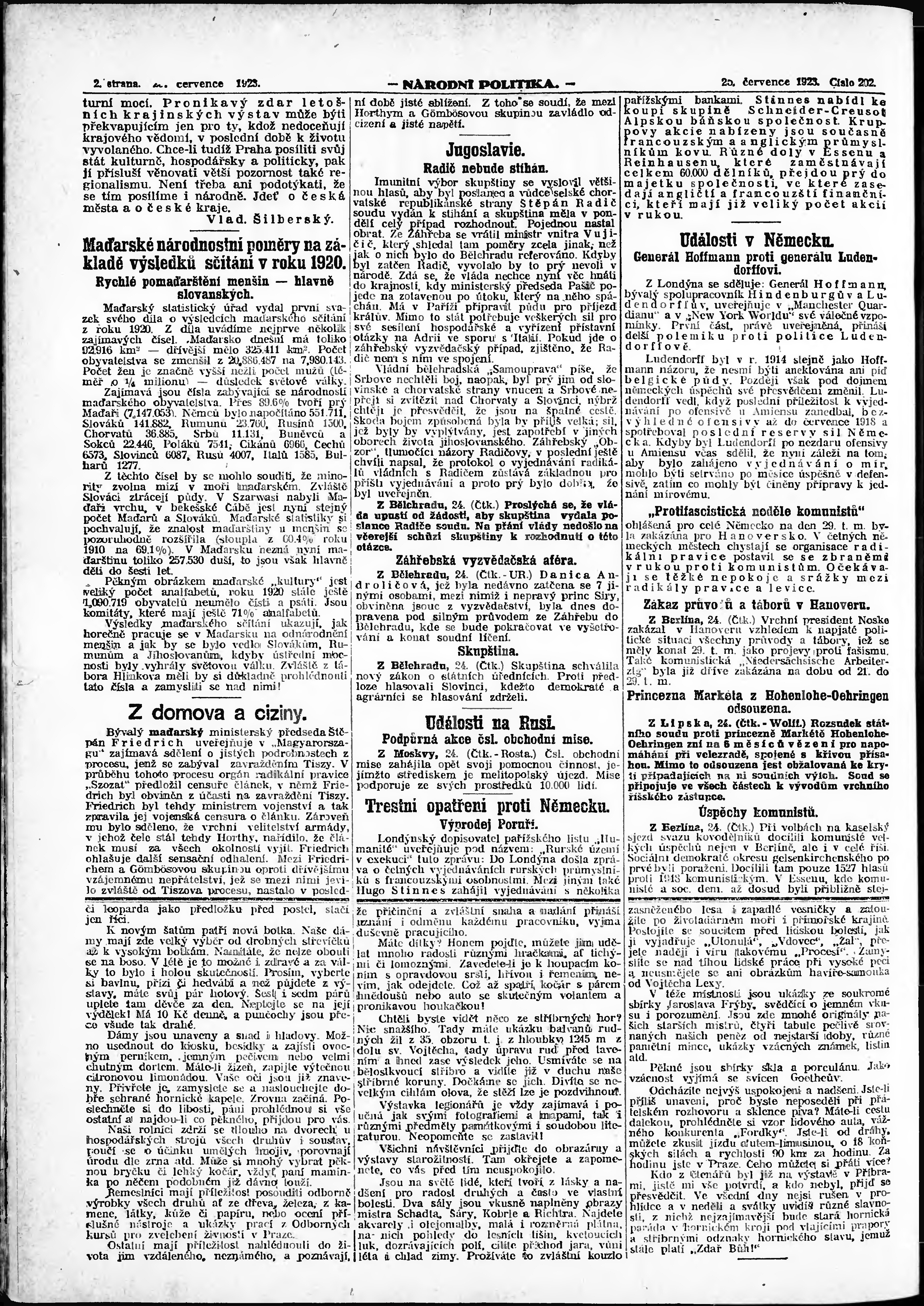 * Datum vydání výtisku: 25.7.1923 Číslo výtisku: 202 Poznámky k výtisku: ranní vydání; vydání pro Prahu;