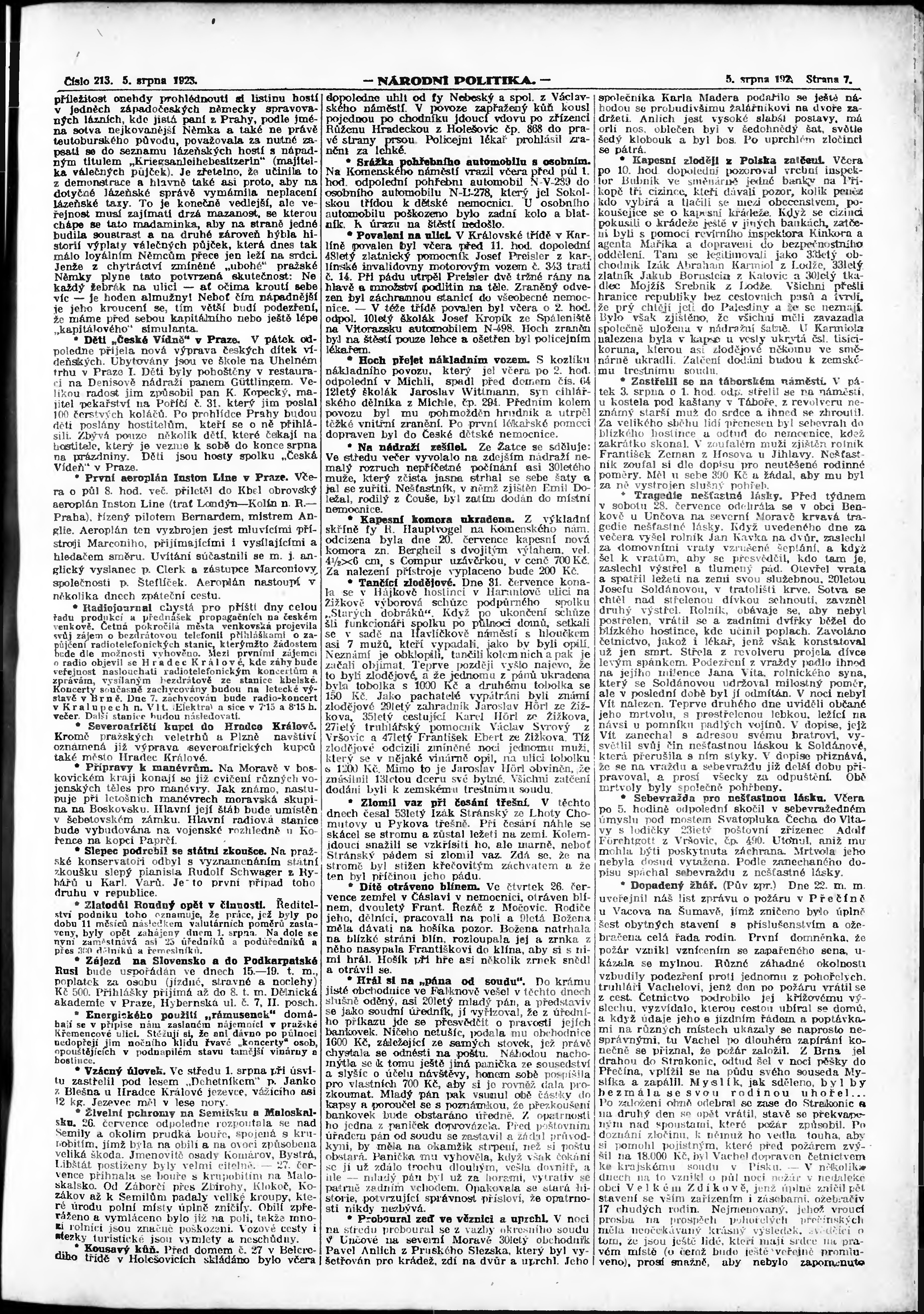 * Datum vydání výtisku: 5.8.1923 Číslo výtisku: 213 Poznámky k výtisku: ranní vydání;