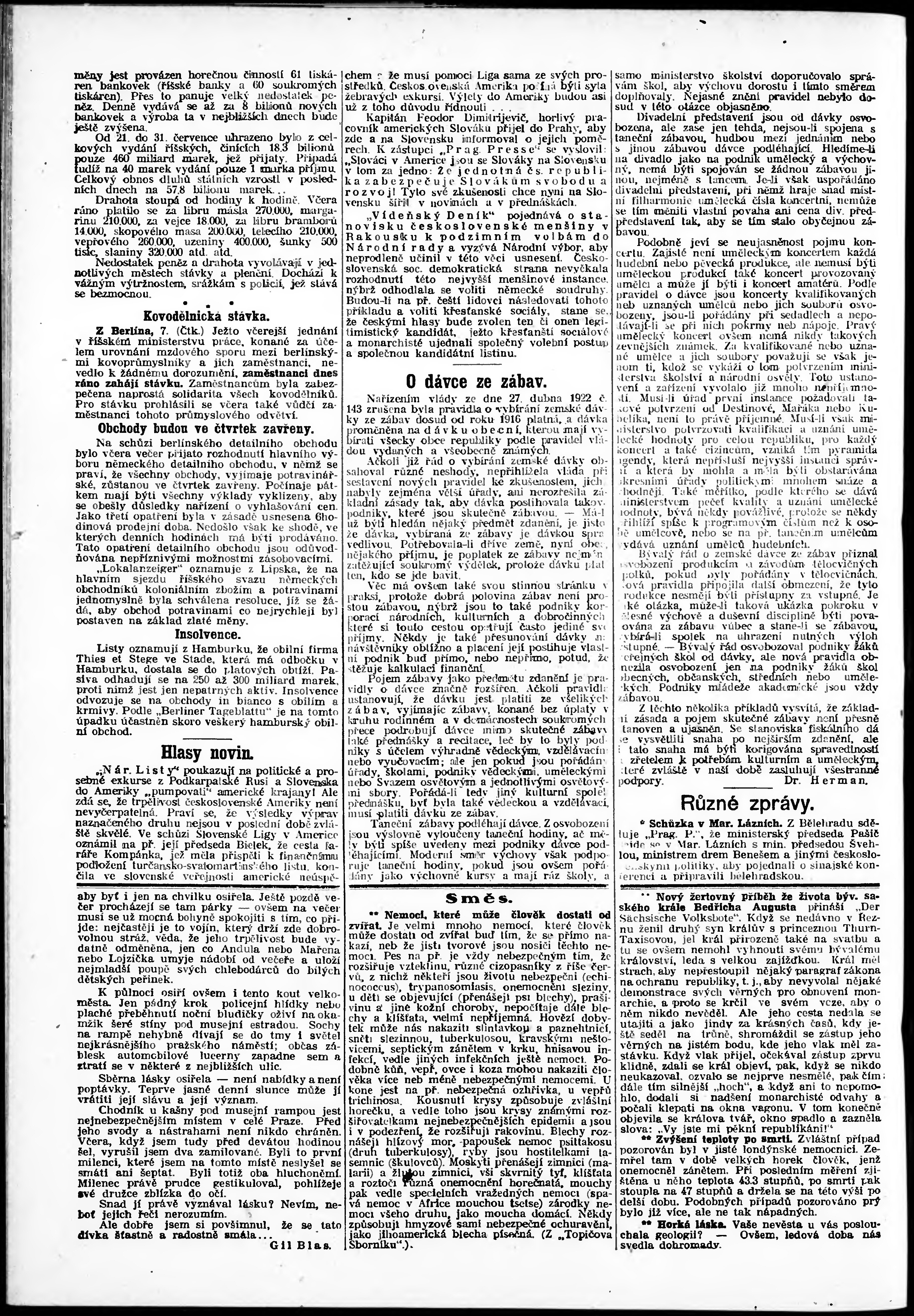 * Datum vydání výtisku: 7.8.1923 Číslo výtisku: 215 Poznámky k výtisku: odpolední vydání;