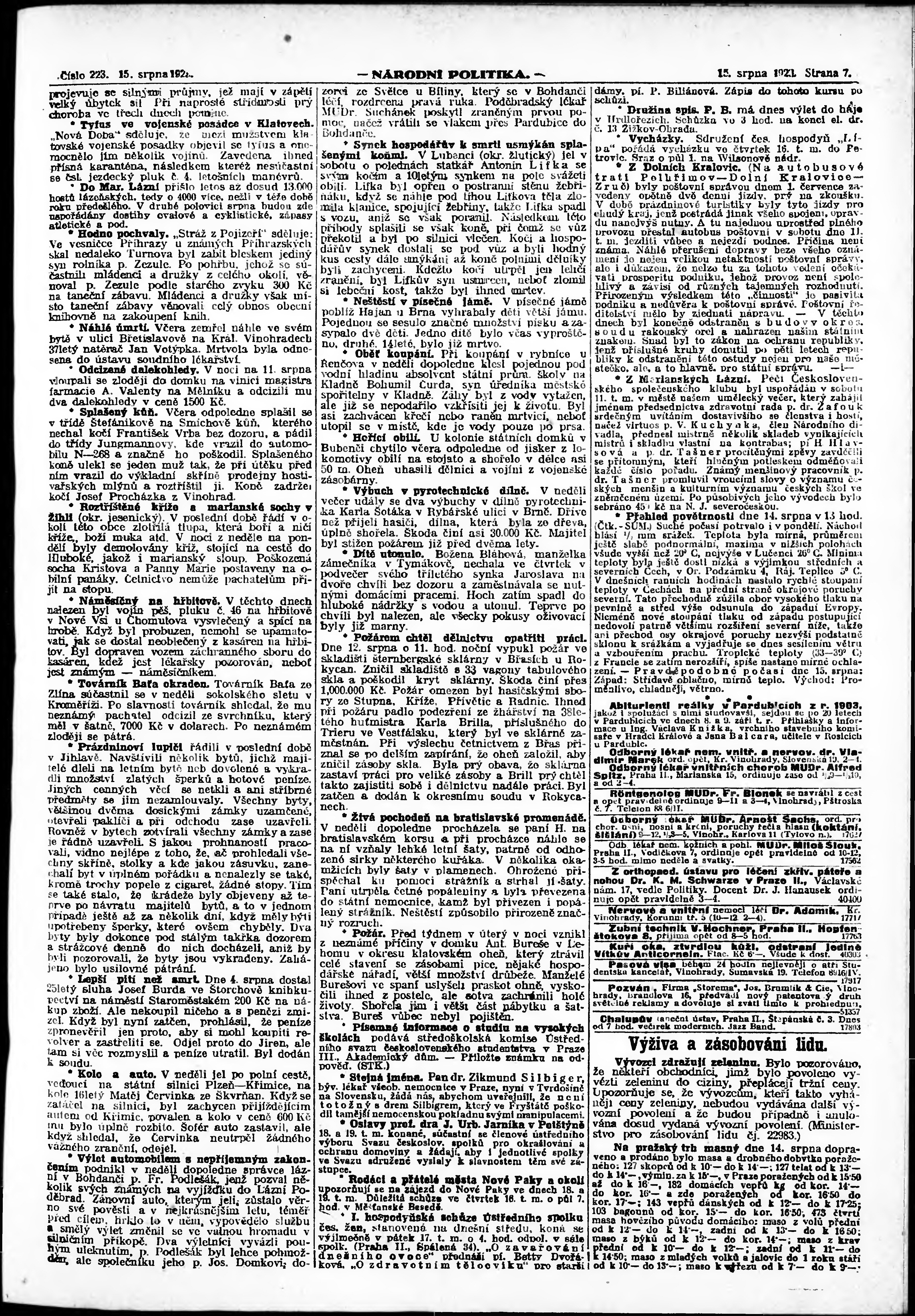 * Datum vydání výtisku: 15.8.1923 Číslo výtisku: 223 Poznámky k výtisku: ranní vydání;