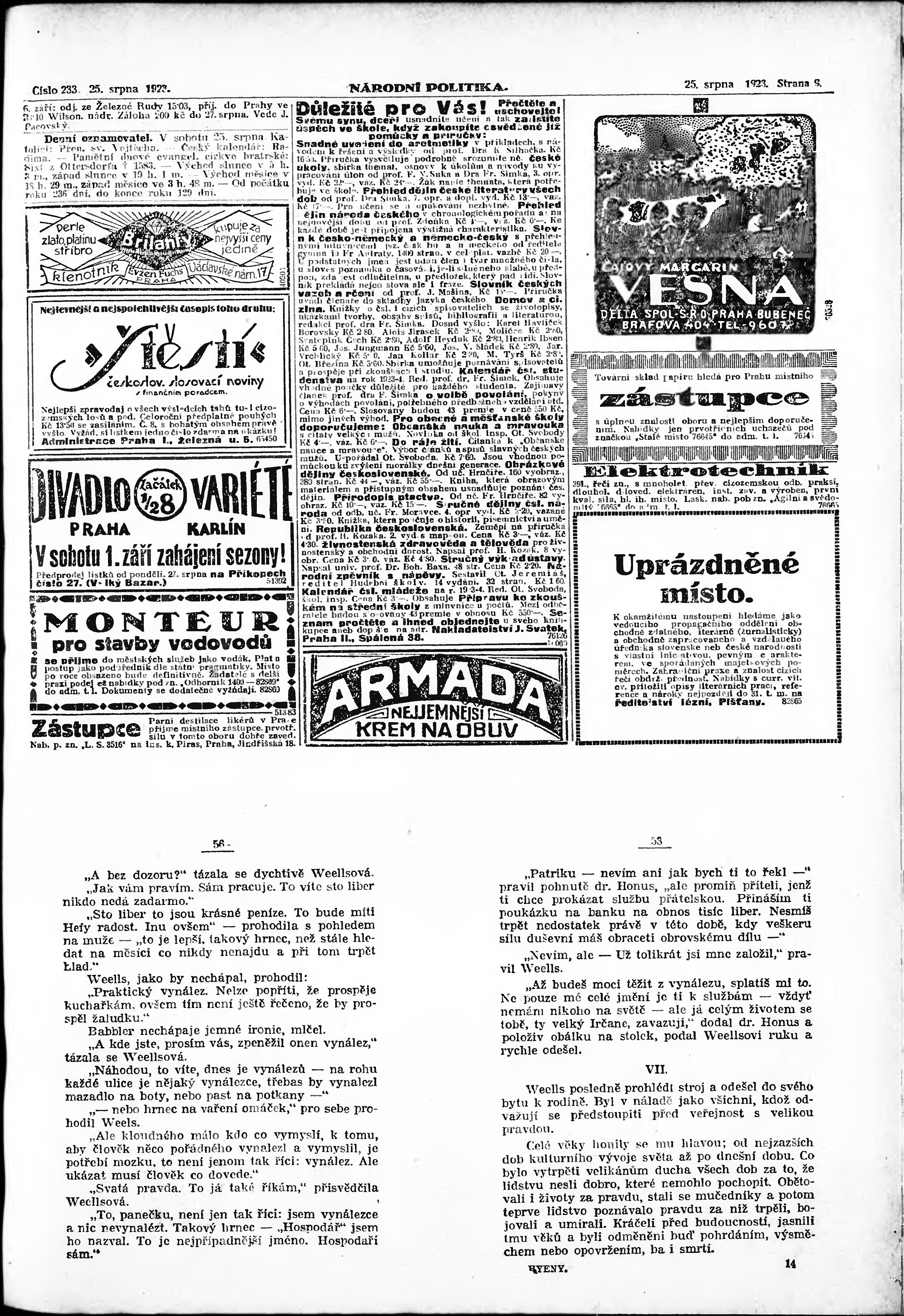 * Datum vydání výtisku: 25.8.1923 Číslo výtisku: 233 Poznámky k výtisku: ranní vydání; vydání pro Prahu;