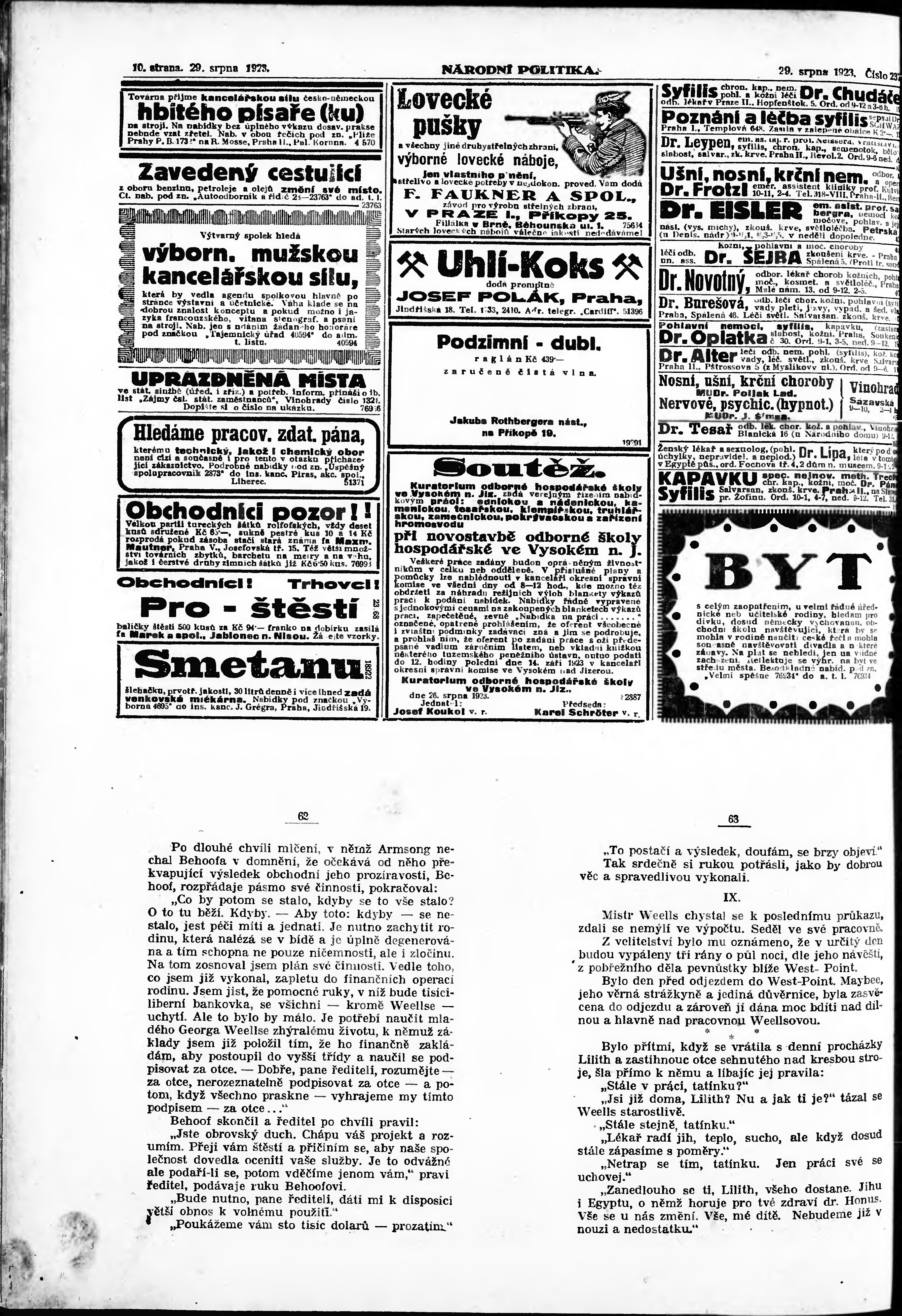 * Datum vydání výtisku: 29.8.1923 Číslo výtisku: 237 Poznámky k výtisku: ranní vydání; vydání pro Prahu;