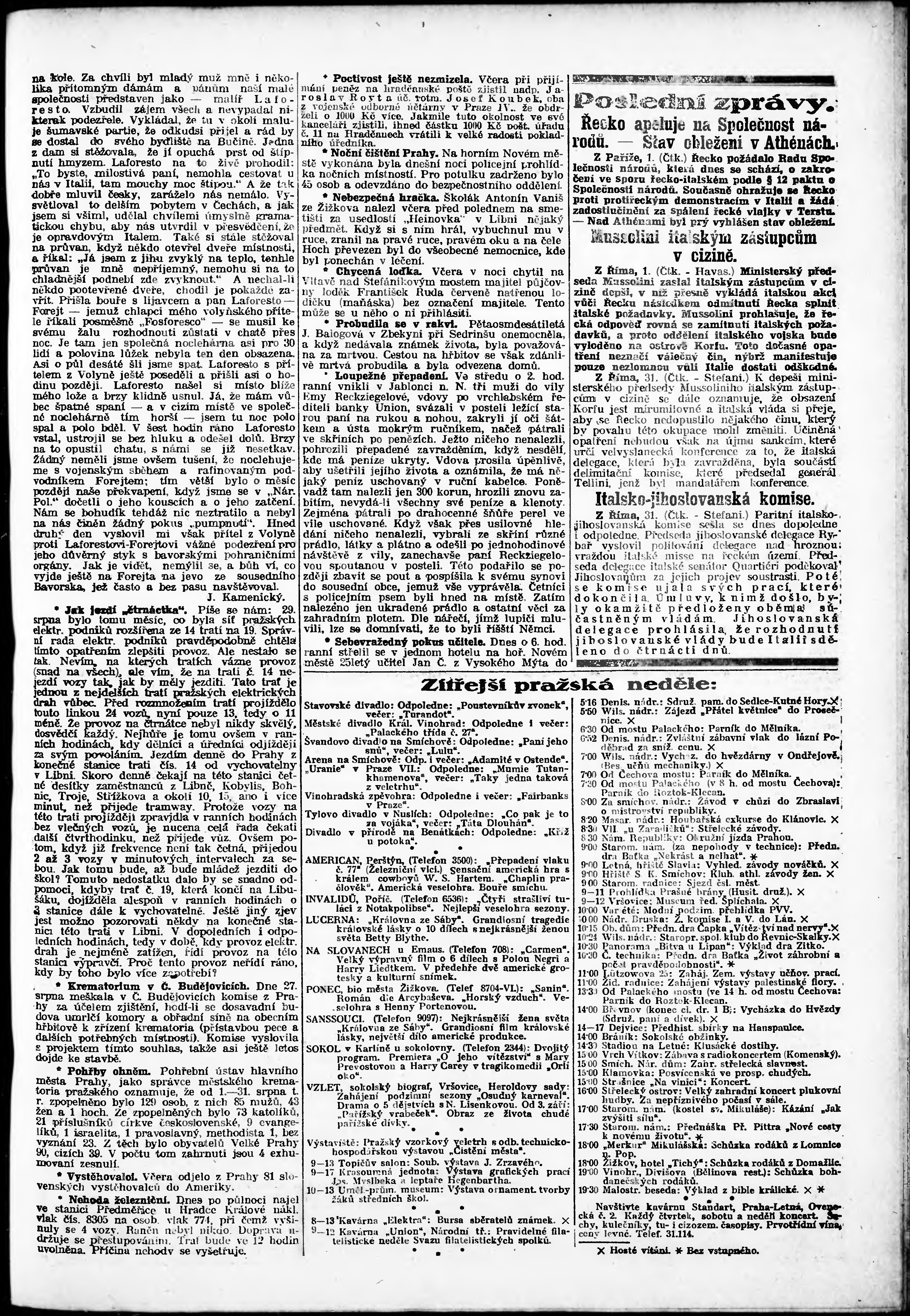 * Datum vydání výtisku: 1.9.1923 Číslo výtisku: 240 Poznámky k výtisku: odpolední vydání;