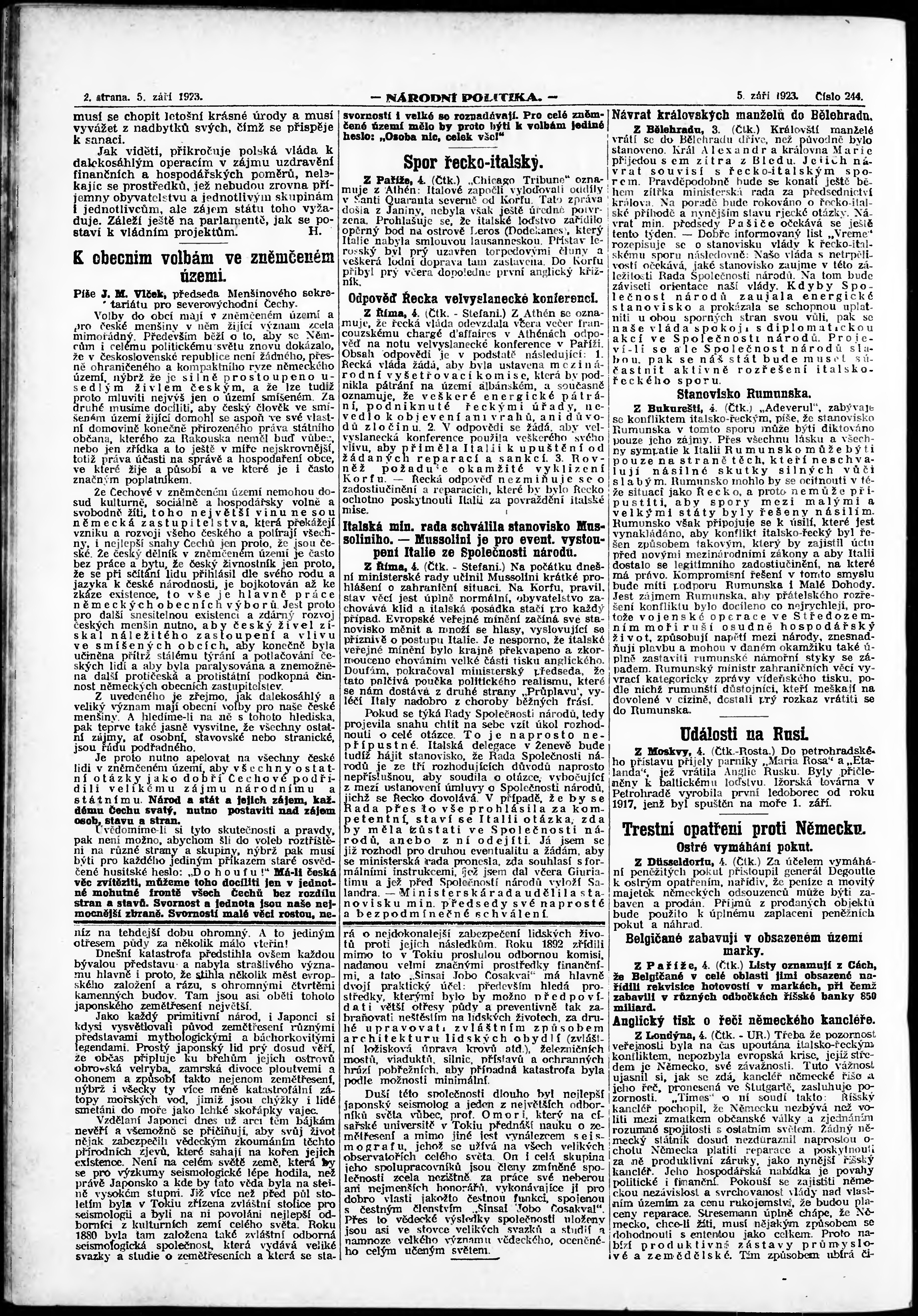 * Datum vydání výtisku: 5.9.1923 Číslo výtisku: 244 Poznámky k výtisku: ranní vydání; vydání pro Prahu;