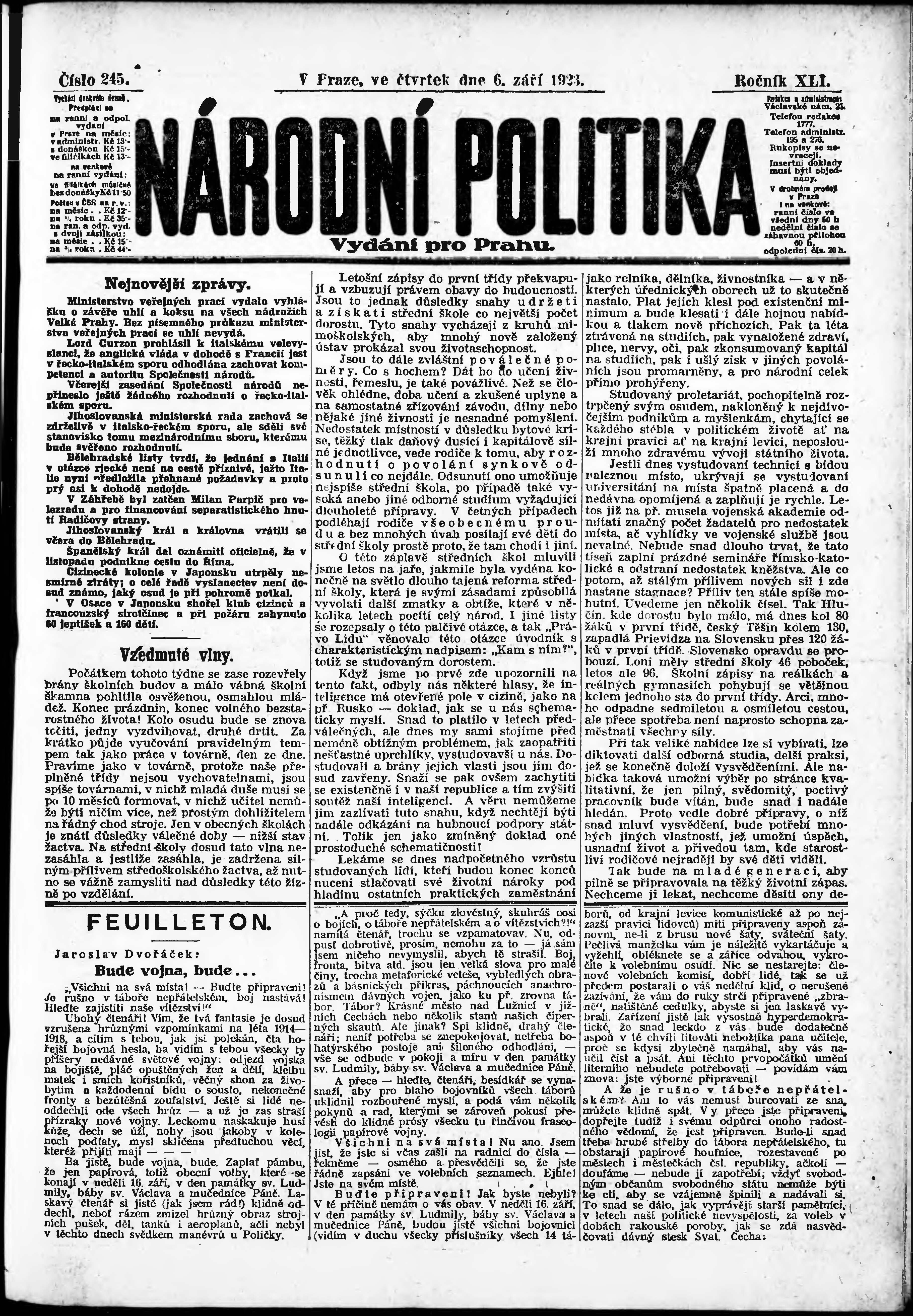 ranní vydání; vydání pro Prahu;