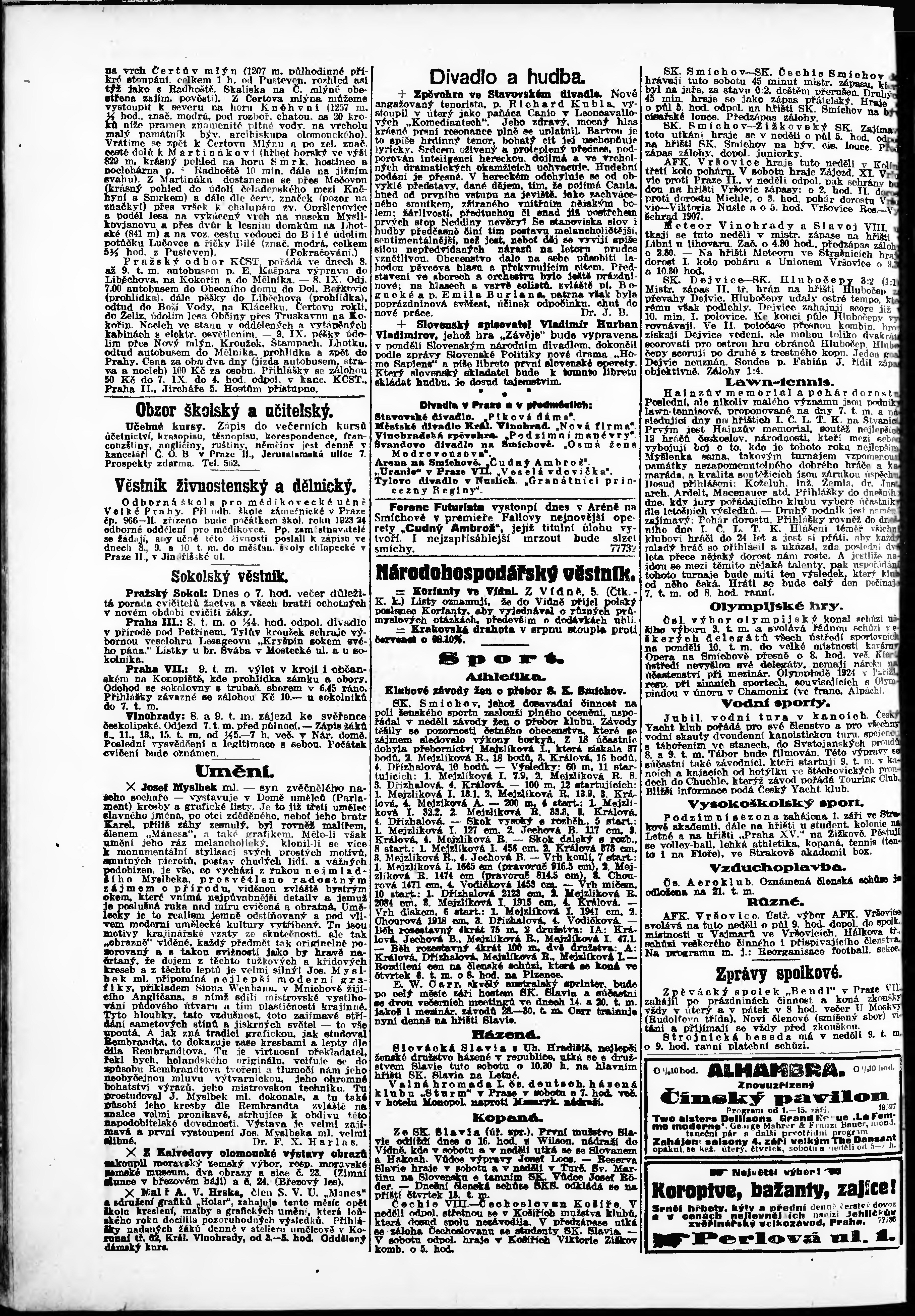 * Datum vydání výtisku: 6.9.1923 Číslo výtisku: 245 Poznámky k výtisku: odpolední vydání;