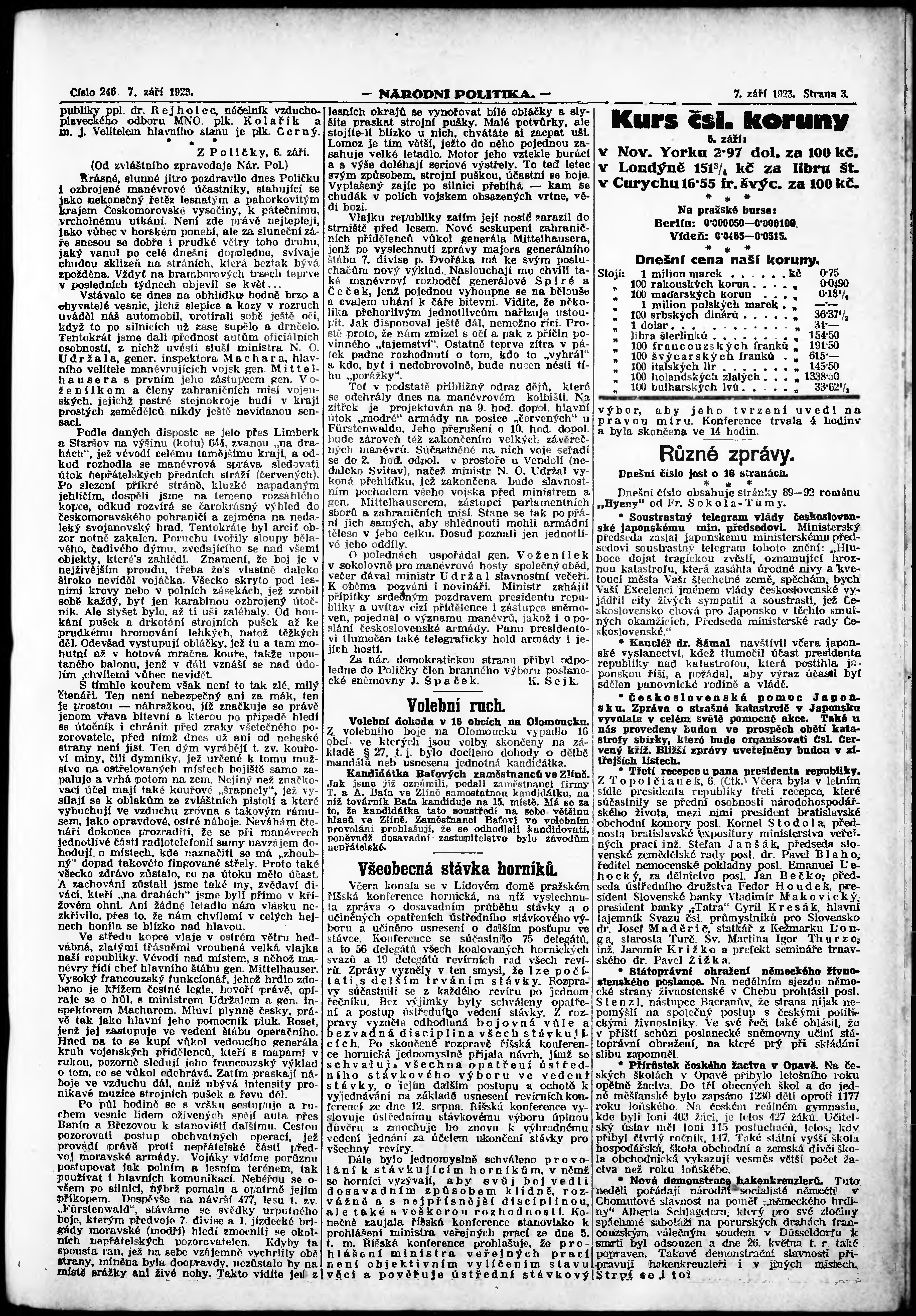 * Datum vydání výtisku: 7.9.1923 Číslo výtisku: 246 Poznámky k výtisku: ranní vydání; vydání pro Prahu;