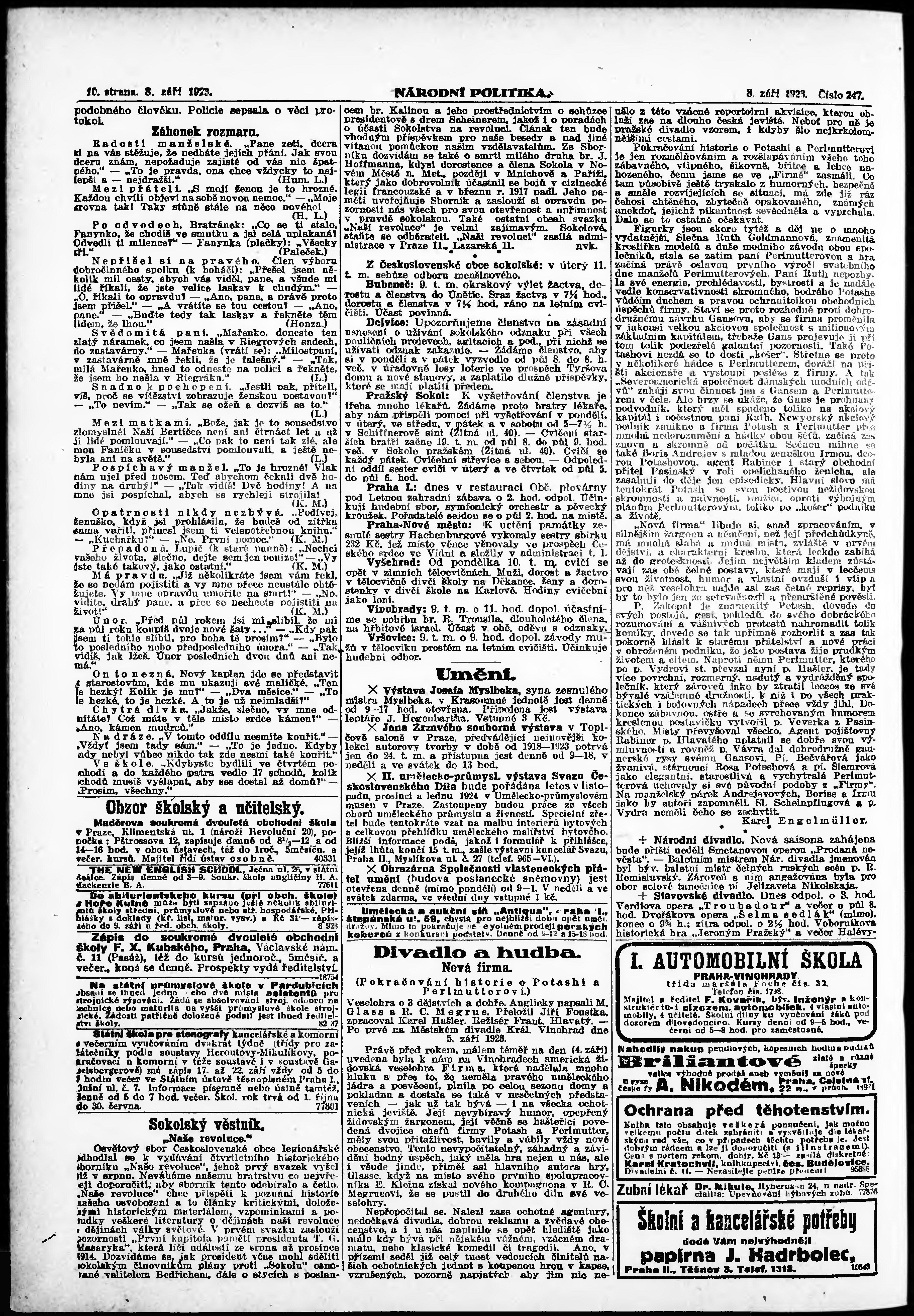 * Datum vydání výtisku: 8.9.1923 Číslo výtisku: 247 Poznámky k výtisku: ranní vydání;