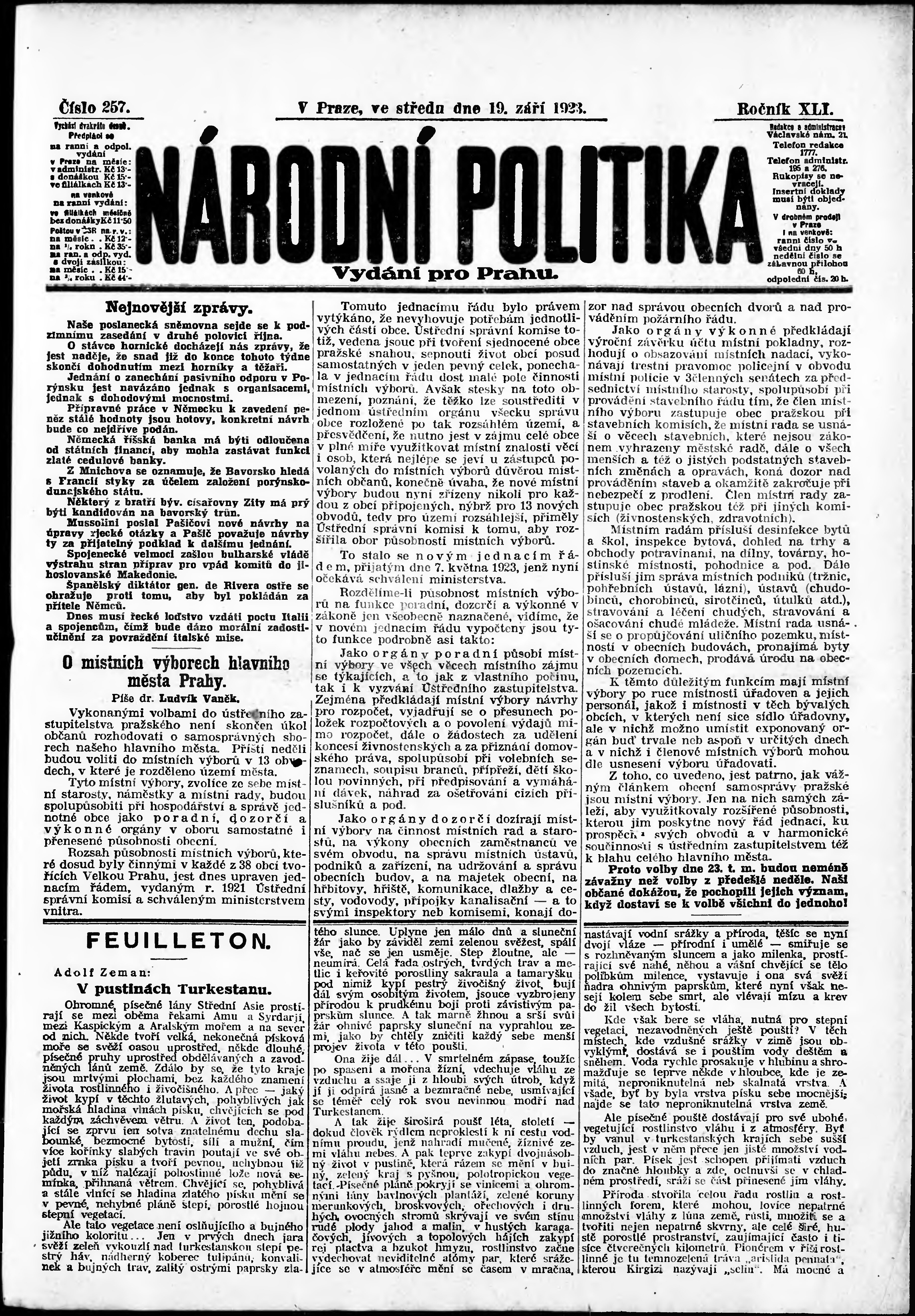 ranní vydání; vydání pro Prahu;